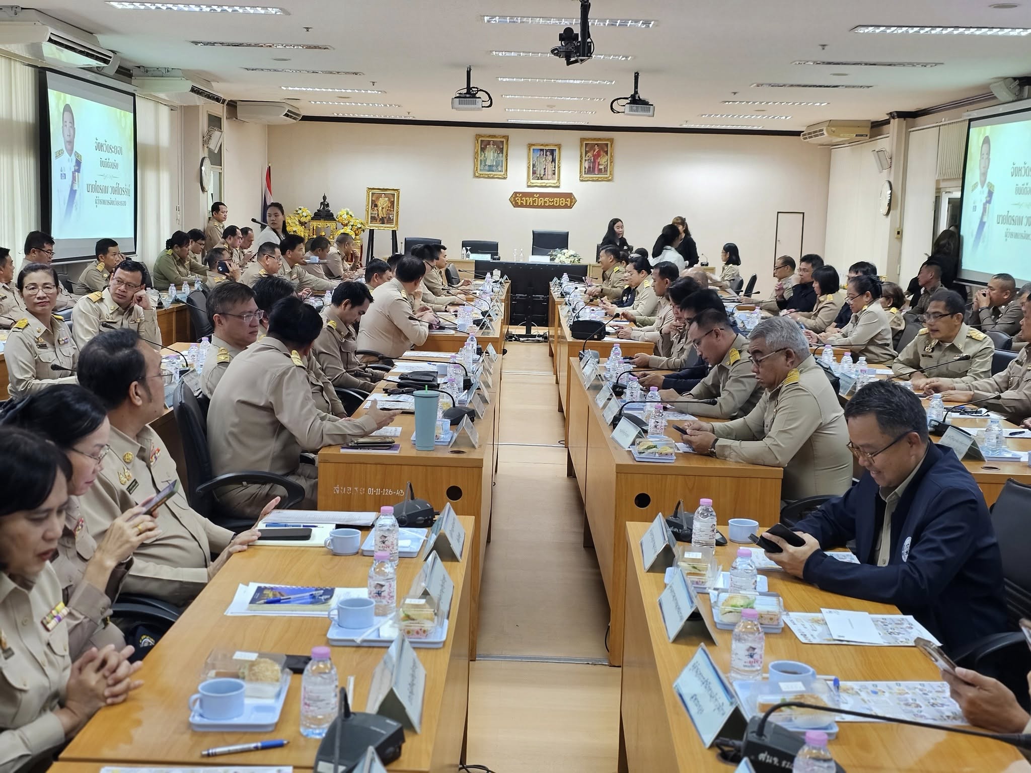 วันจันทร์ที่ 24 พฤศจิกายน 2568 นางวิไลกัลยา สาริพันธ์ ปฏิรูปที่ดินจังหวัดระยอง เข้าร่วมประชุมกรมการจังหวัด หัวหน้าส่วนราชการ นายอำเภอ และหัวหน้าหน่วยงานประจำจังหวัด ครั้งที่ 11/2568 ประจำเดือนพฤศจิกายน 2568 โดยมีนายไตรพ วงศ์ไตรรัตน์ ผู้ว่าราชการจังหวัดระยอง เป็นประธานในการประชุมฯ เพื่อรับทราบนโยบายเร่งด่วน ตลอดจนหารือข้อราชการและงานสำคัญต่าง ๆ ของจังหวัดระยอง ณ ห้องภักดีศรีสงคราม ชั้น 4 ศาลากลางจังหวัดระยอง อำเภอเมืองระยอง จังหวัดระยอง