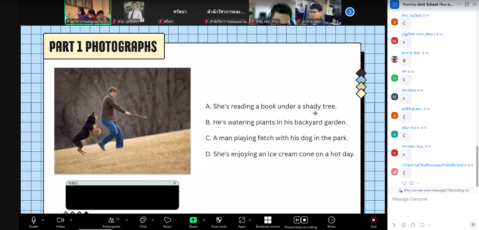 วันศุกร์ที่ 29 สิงหาคม 2568 เวลา 09.00 – 10.30 น. สำนักวิชาการและแผนงาน กลุ่มความร่วมมือระหว่างประเทศ (กคร.) จัดกิจกรรมการเรียนรู้ Unit School ประจำปีงบประมาณ พ.ศ. 2568 เรื่อง “ตะลุยข้อสอบภาษาอังกฤษ ก.พ. และ TOEIC ครั้งที่ 2 นายเกียรติยศ ทรงสง่า ผู้อำนวยการสำนักวิชาการและแผนงาน เป็นประธานกล่าวเปิดกิจกรรม โดยมีนางสาววีรดา ทิพจรุญ และนายศุภชัย จันทา ตำแหน่งนักวิเทศสัมพันธ์ปฏิบัติการ ร่วมเป็นวิทยากร บรรยายให้ความรู้เกี่ยวกับข้อสอบภาษาอังกฤษ ก.พ. และ TOEIC มีวัตถุประสงค์จัดขึ้นเพื่อเสริมสร้างทักษะความรู้ความเข้าใจเกี่ยวกับการทำข้อสอบภาษาอังกฤษสำหรับ ก.พ. และ TOEIC ให้กับบุคลากรของสำนักงานการปฏิรูปที่ดินเพื่อเกษตรกรรมมากยิ่งขึ้น กิจกรรมในครั้งที่ 2 นี้มี ข้อสอบ TOEIC ให้ผู้เข้าร่วมกิจกรรมได้ลองฝึกทำตัวอย่างข้อสอบ TOEIC พาร์ทการฟัง (Listening) มีจำนวน 4 พาร์ท ประกอบด้วย