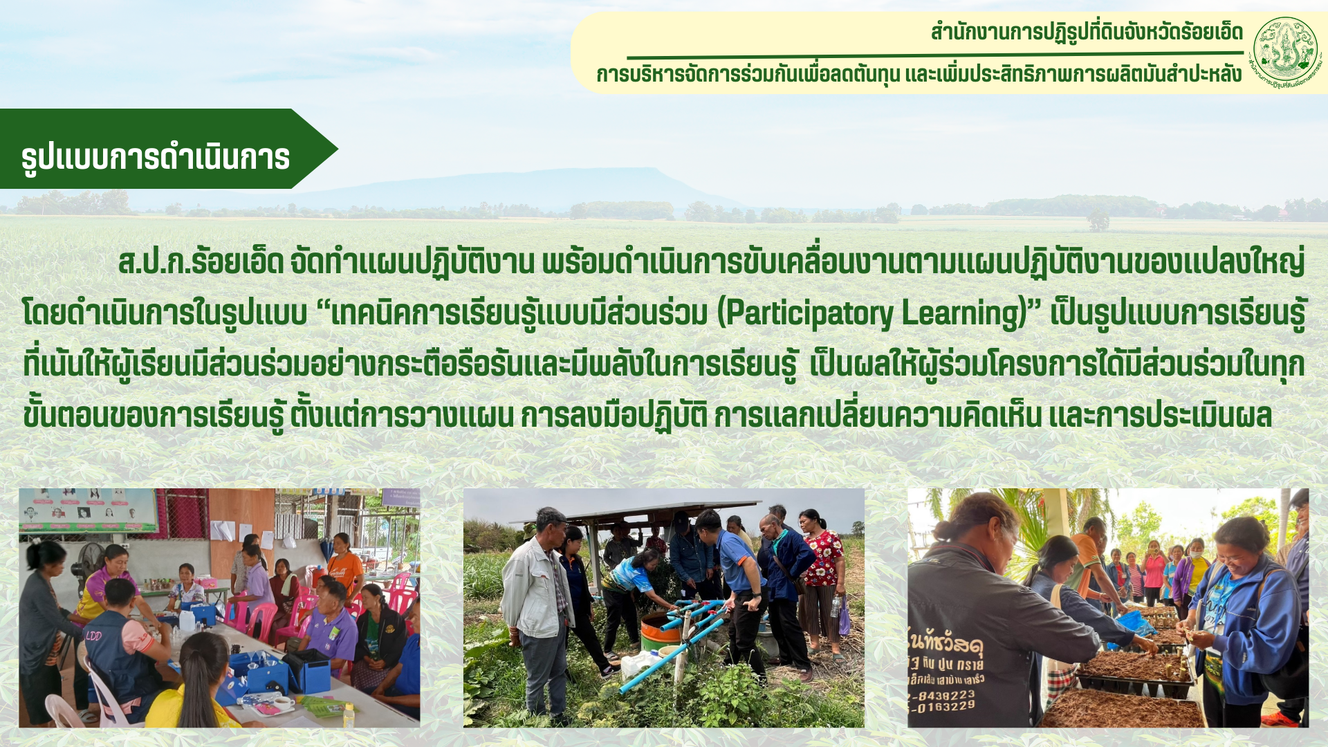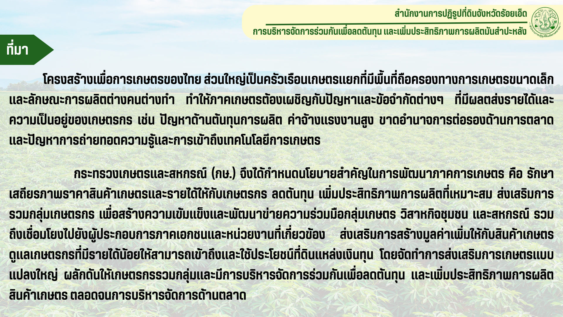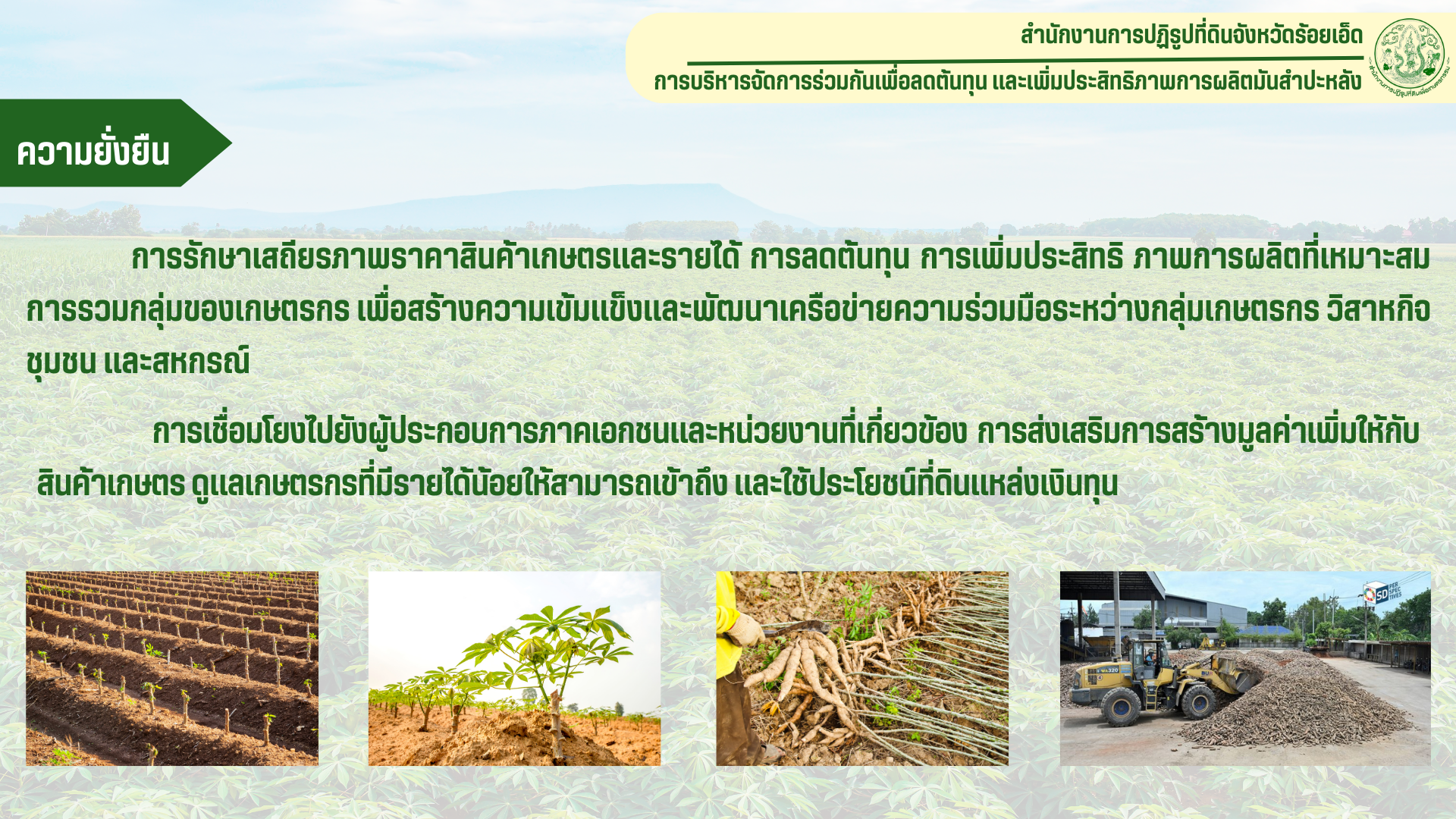 ผลงาน “การบริหารจัดการร่วมกันเพื่อลดต้นทุน และเพิ่มประสิทธิภาพการผลิตมันสำปะหลัง”