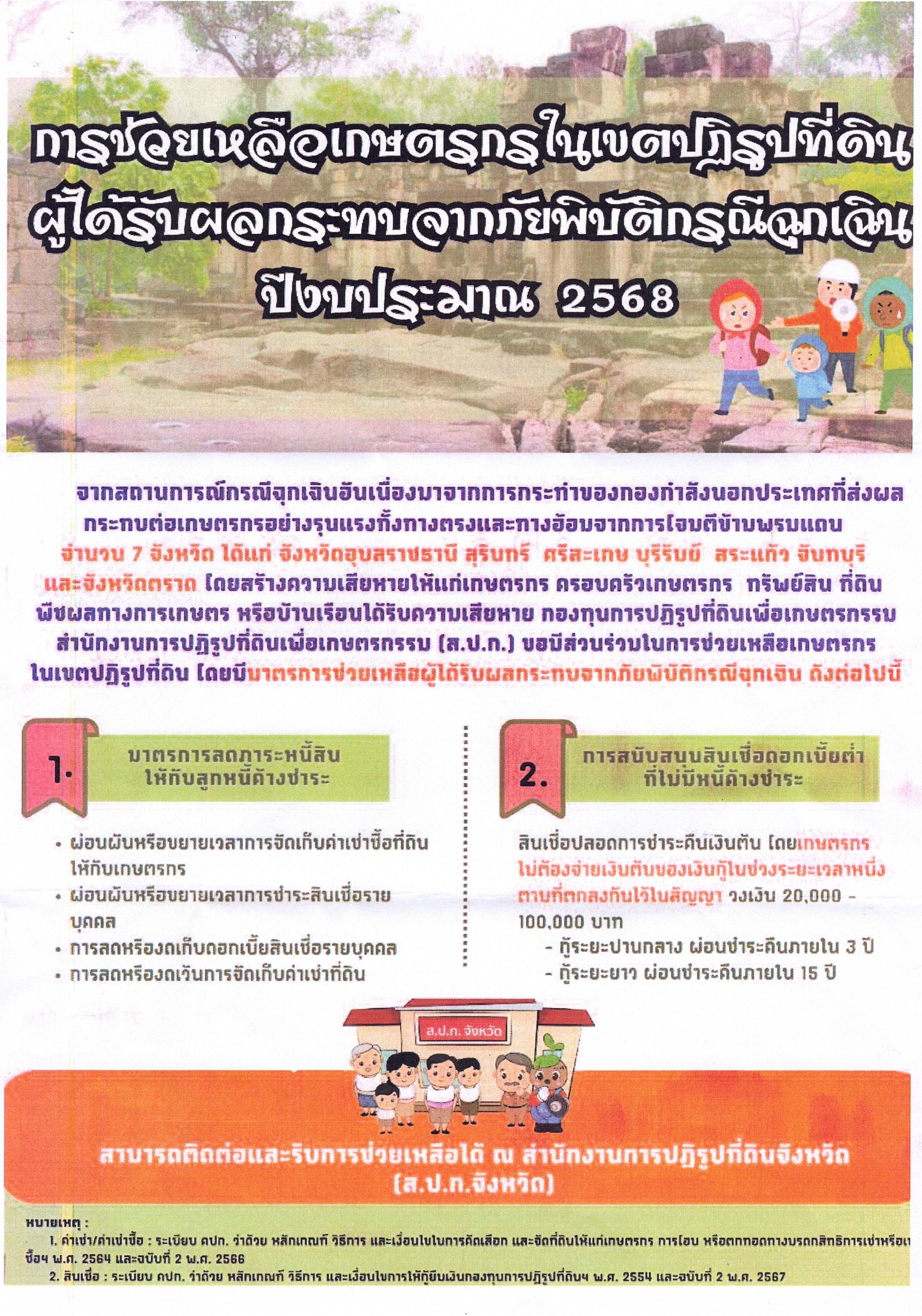 การช่วยเหลือเกษตรกรในเขตปฏิรูปที่ดินที่ได้รับผลกระทบจากภัยพิบัติฯ