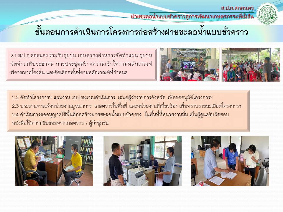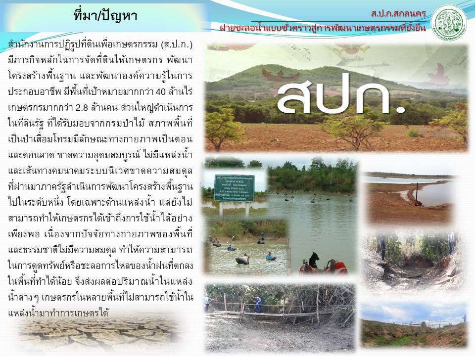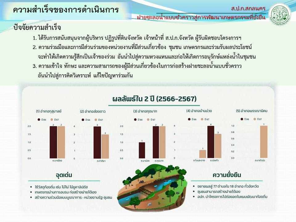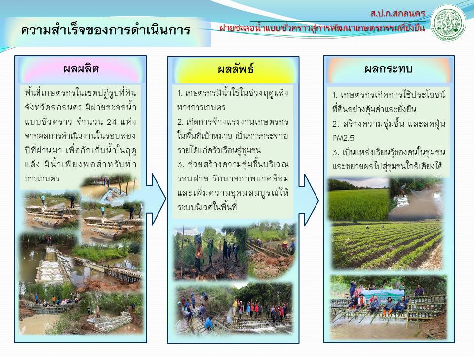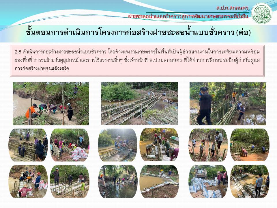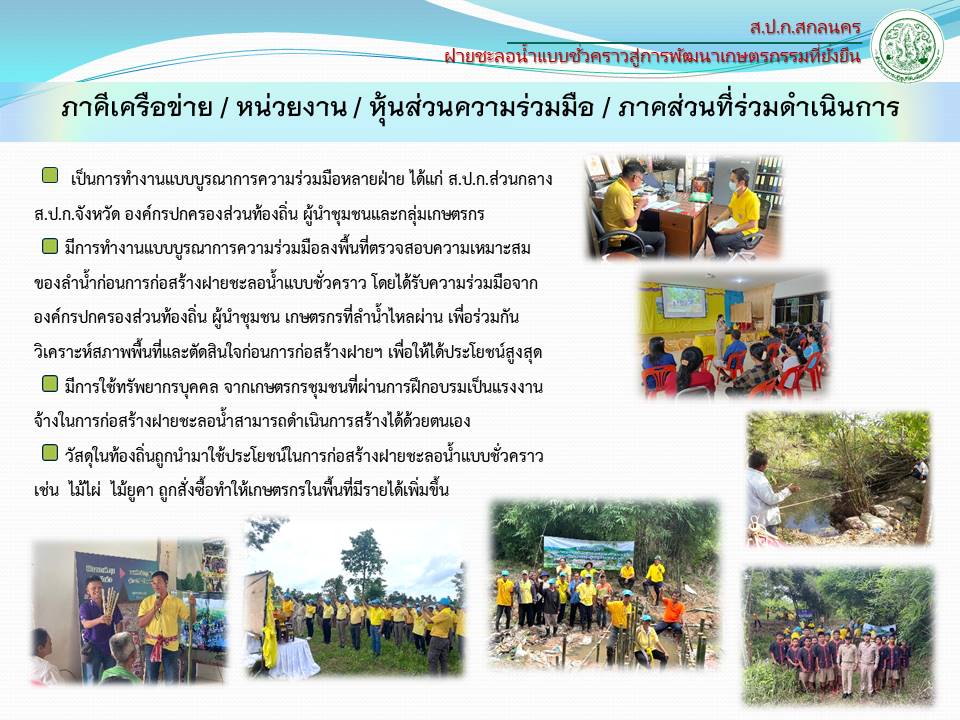 ชื่อผลงาน "โครงการก่อสร้างฝายชะลอน้ำแบบชั่วคราวสู่การพัฒนาเกษตรกรรมที่ยั่งยืน"