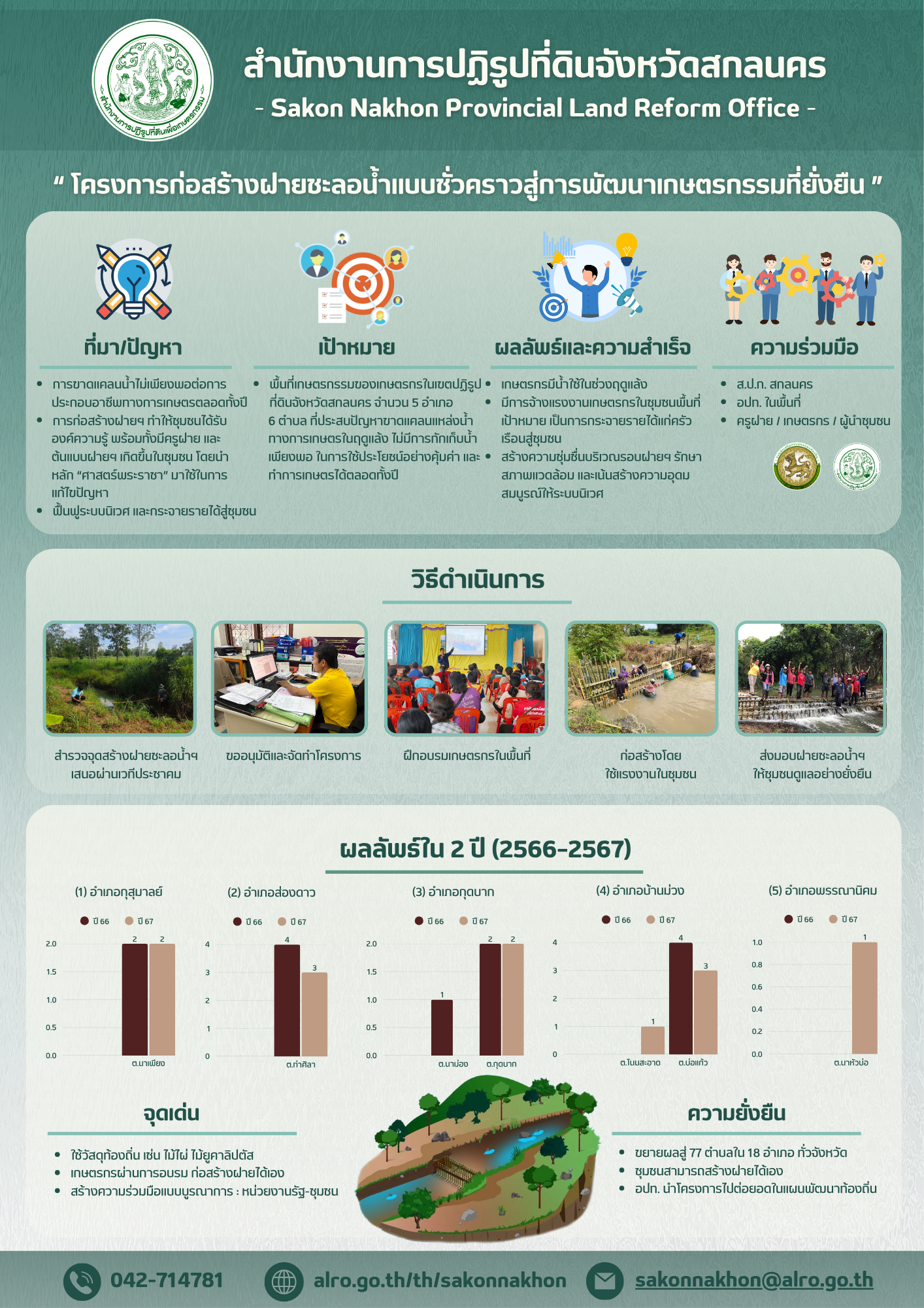ส.ป.ก.สกลนคร ดำเนินการจัดกิจกรรมปลูกหญ้าแฝกฯ ภายใต้โครงการพัฒนาและรณรงค์การใช้หญ้าแฝก อันเนื่องมาจากพระราชดำริ ในเขตปฏิรูปที่ดินจังหวัดสกลนคร ปีงบประมาณ พ.ศ.2568