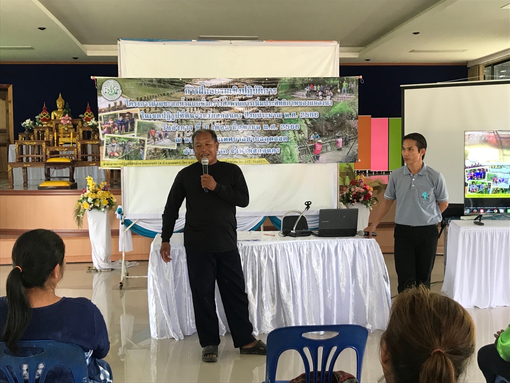 เมื่อวันที่ ๖ มิถุนายน ๒๕๖๖ นายสมศักดิ์ แป้นถนอม ปฏิรูปที่ดินจังหวัดสกลนคร มอบหมายให้ ว่าที่ ร.ต.อพิชัย โสสุทธิ์ นักวิชาการปฏิรูปที่ดินชำนาญการ ผู้รับผิดชอบโครงการ และคณะกลุ่มยุทธศาสตร์ฯ ดำเนินการจัดฝึกอบรมเชิงปฏิบัติการ ให้แก่เกษตรกรเป้าหมาย จำนวน ๕๒ ราย เพื่อสร้างความรู้ ความเข้าใจ ประโยชน์ในการก่อสร้างฝายชะลอน้ำชั่วคราวสามารถนำไปประยุกต์ใช้ในพื้นที่ของตนเอง ภายใต้โครงการฝายชะลอน้ำแบบชั่วคราวสำหรับการเพิ่มประสิทธิภาพของแหล่งน้ำในเขตปฏิรูปที่ดินจังหวัดสกลนคร ประจำปีงบประมาณ พ.ศ.๒๕๖๖ ณ ห้องประชุมเทศบาลตำบลกุดแฮด อำเภอกุดบาก จังหวัดสกลนคร โดยมีนายประภาส พองพรหม รองนายกเทศมนตรีตำบลกุดแฮด เป็นประธานในพิธีเปิด และภายหลังการฝึกอบรมในระหว่างวันที่ ๗ - ๑๐ มิถุนายน ๒๕๖๖ ได้ดำเนินการก่อสร้างฝายชะลอน้ำ แบบชั่วคราว จำนวน ๓ แห่ง ประกอบด้วย ๑) ห้วยม้าฮี ๒) ห้วยแล้ง หมู่ที่ ๗ ตำบลกุดบาก อำเภอกุดบาก จังหวัดสกลนคร และ ๓) ห้วยแสนพัน หมู่ที่ ๙ ตำบลนาม่อง อำเภอกุดบาก จังหวัดสกลนคร