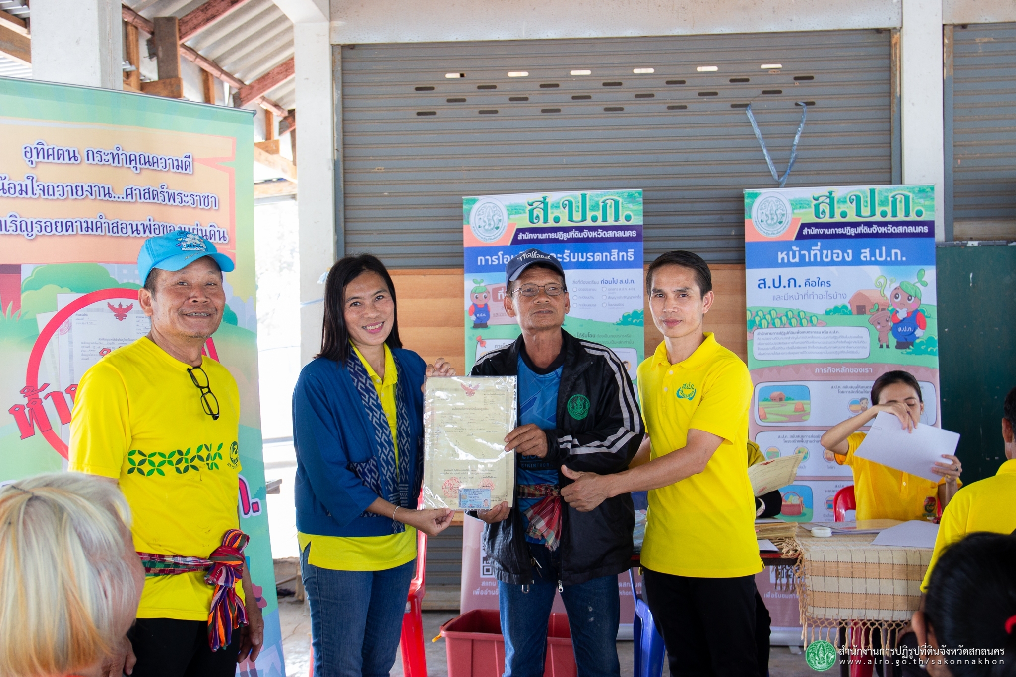 วันที่ 14 กรกฎาคม 2566 นายสมศักดิ์ แป้นถนอม ปฏิรูปที่ดินจังหวัดสกลนคร มอบหมายให้ นางสาวปัณณ์ธีรา บุญทา นักวิชาการปฏิรูปที่ดินชำนาญการ ผู้รับผิดชอบโครงการ และคณะกลุ่มยุทธศาสตร์ฯ ดำเนินการจัดกิจกรรมส่งเสริมการปลูกหญ้าแฝก เพื่อการอนุรักษ์ดินและน้ำ ป้องกันการพังทลายของหน้าดิน จำนวน 32,800 กล้า ภายใต้โครงการพัฒนาและรณรงค์การใช้หญ้าแฝกอันเนื่องมาจากพระราชดำริ ประจำปีงบประมาณ พ.ศ. 2566 ณ บริเวณขุดลอกหนองคำเมย หมู่ที่ 2 บ้านภูตะคาม ตำบลท่าศิลา อำเภอส่องดาว จังหวัดสกลนคร มีผู้เข้าร่วมกิจกรรมประมาณ 50 ราย ทั้งนี้ นางมนเทียร สีมาวุธ ผู้อำนวยการกลุ่มยุทธศาสตร์ฯ ได้ประชาสัมพันธ์การขยายระยะเวลาในการยื่น "ขอรับมรดกสิทธิ" และ ขั้นตอนการยื่นขอรับมรดกสิทธิ เมื่อเกษตรกร ส.ป.ก. “เสียชีวิต” พร้อมทั้งมอบเอกสาร ส.ป.ก 4-01 ให้แก่เกษตรในพื้นที่ ตำบลท่าศิลา จำนวน 40 ราย 45 แปลง