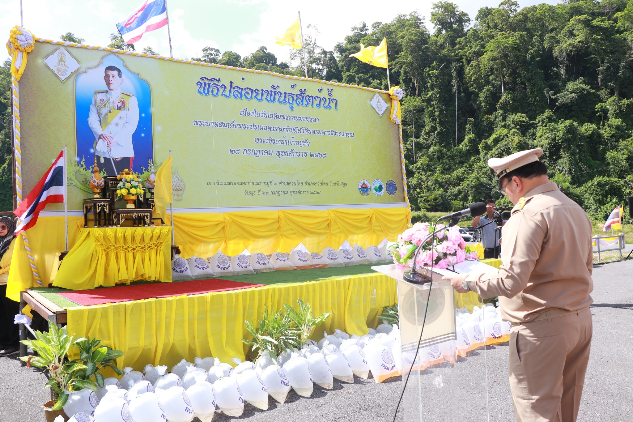 วันที่ 23 กรกฎาคม 2568 เวลา 10.00 น. ที่บริเวณฝายคลองท่าแพร หมู่ที่ 3 ตำบลควนโดน อำเภอควนโดน จังหวัดสตูล นางรัชดา เพชรรัตน์ ปฏิรูปที่ดินจังหวัดสตูล ร่วมพิธีปล่อยพันธุ์สัตว์น้ำเพื่อเฉลิมพระเกียรติและถวายเป็นพระราชกุศล เนื่องในโอกาสวันเฉลิมพระชนมพรรษา พระบาทสมเด็จพระวชิรเกล้าเจ้าอยู่หัว 28 กรกฎาคม 2568 โดยมี นายศักระ กปิลกาญจน์ ผู้ว่าราชการจังหวัดสตูล เป็นประธานในพิธีปล่อยพันธุ์สัตว์น้ำเพื่อเฉลิมพระเกียรติและถวายเป็นพระราชกุศล เนื่องในโอกาสวันเฉลิมพระชนมพรรษา พระบาทสมเด็จพระวชิรเกล้าเจ้าอยู่หัว 28 กรกฎาคม 2568 โดยมีทันตแพทย์หญิงสุกีรติ กปิลกาญจน์ นายกเหล่ากาชาดจังหวัดสตูล/ประธานชมรมแม่บ้านมหาดไทยจังหวัดสตูล นายสมยศ จิตเที่ยง นายอำเภอควนโดน นายนิพนธ์ เสนอินทร์ ประมงจังหวัดสตูล พร้อมด้วยหัวหน้าส่วนราชการ ข้าราชการ และประชาชนในพื้นที่ ร่วมกิจกรรมโดยพร้อมเพรียงกัน ท่ามกลางบรรยากาศแห่งความจงรักภักดี โดยผู้ร่วมกิจกรรมต่างสวมใส่เสื้อหรือชุดโทนสีเหลือง