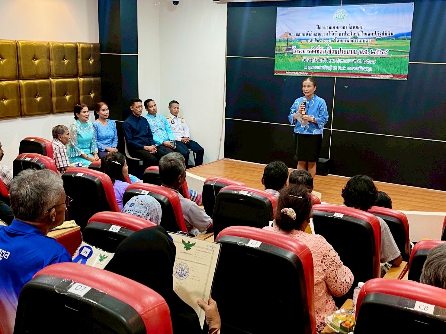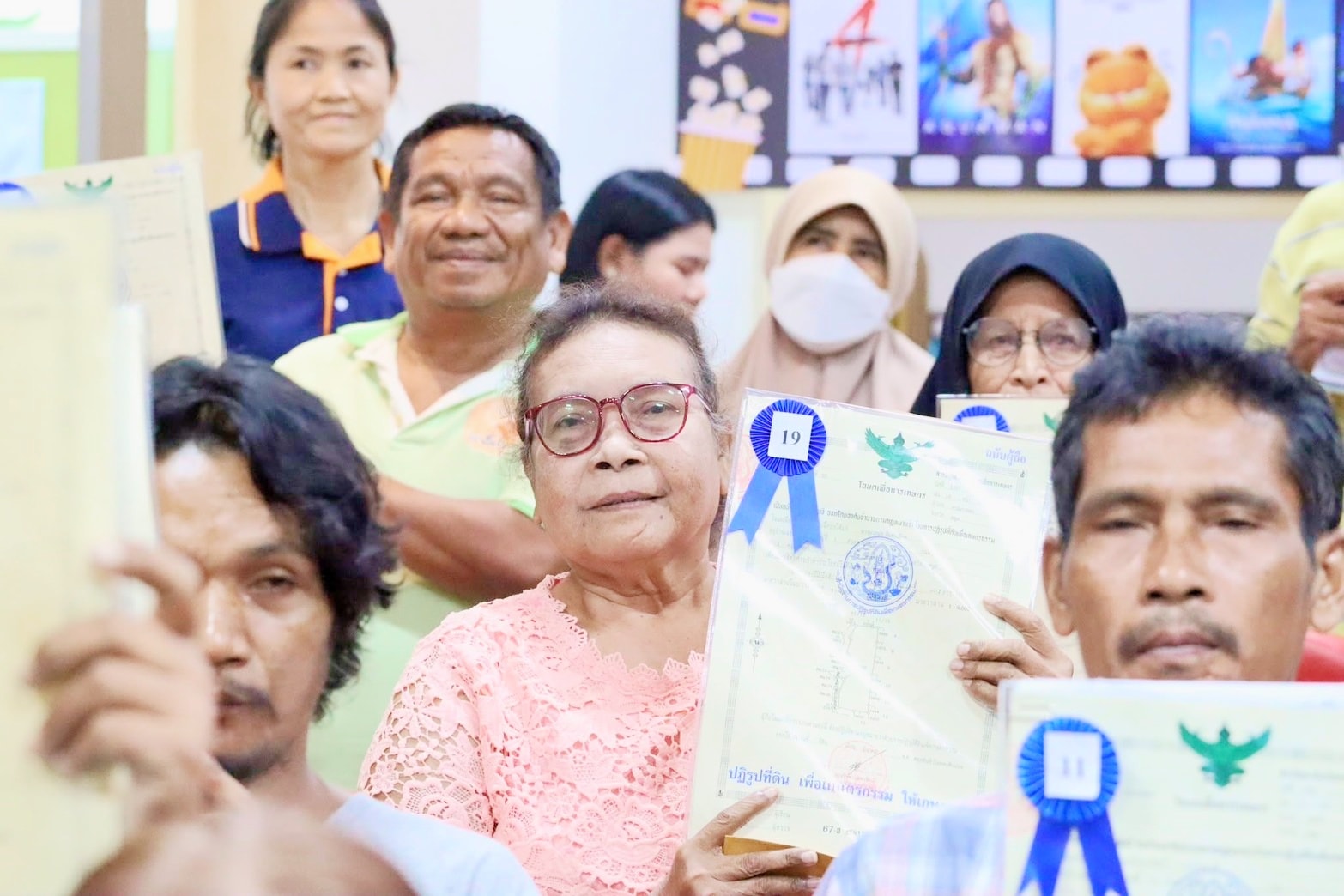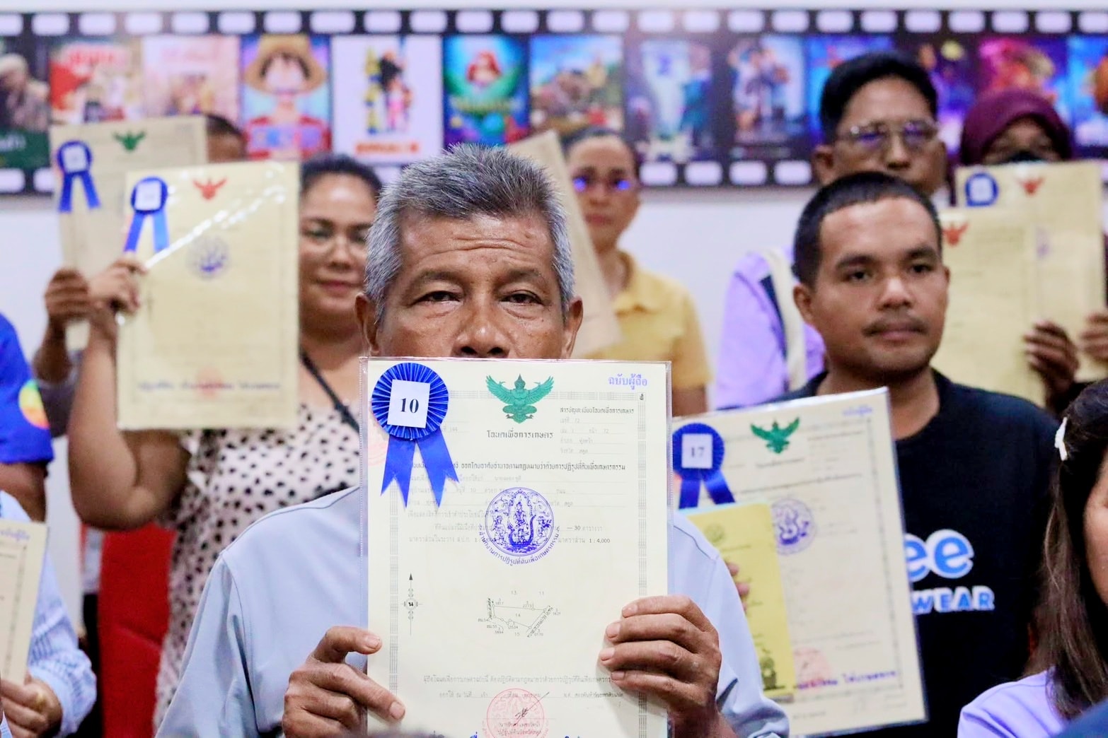 วันที่14 สิงหาคม 2568 เวลา 14.30 น.นางรัชดา เพชรรัตน์ ปฏิรูปที่ดินจังหวัดสตูล มอบหมายกลุ่มยุทธศาสตร์และการปฏิรูปที่ดิน จัดฝึกอบรมเกษตรกรก่อนมอบหนังสืออนุญาตให้เข้าทำประโยชน์ในเขตปฏิรูปที่ดิน (ส.ป.ก.4-01)และโฉนดเพื่อการเกษตร พร้อมให้ความรู้แก่เกษตรกร เกี่ยวกับสิทธิหน้าที่ของเกษตรกร การเพิ่มมูลค่าที่ดิน สิทธิประโยชน์จากส.ป.ก.4-01 และโฉนดเพื่อการเกษตร พร้อมมอบเอกสารสิทธิ์ให้แก่เกษตรกร จำนวน 46 ราย เนื้อที่ประมาณ 80 ไร่ โดยได้รับเกียรติจากนายณัฐวุฒิ บินตำมะหงง รองนายกเทศมนตรีเมืองสตูล เป็นประธานฯ นายนิพนธ์ เสนอินทร์ ประมงจังหวัดสตูล นางสาวดาวัล บัวงาม เกษตรและสหกรณ์จังหวัดสตูล นางสุภารัตน์ หาญศิริสวัสดิ์ ผู้อำนวยการสำนักงานตรวจบัญชีสหกรณ์สตูล และนายมิตร บุญจันทร์ ผู้อำนวยการโครงการชลประทานสตูล ร่วมมอบเอกสารสิทธิ์ ณ ห้อง Mini Theater อุทยานการเรียนรู้ TK Park เทศบาลเมืองสตูล อำเภอเมืองสตูล จังหวัดสตูล การมอบหนังสืออนุญาตให้เข้าทำประโยชน์ในเขตปฏิรูปที่ดิน (ส.ป.ก.4-01) และโฉนดเพื่อการการเกษตร เป็นประโยชน์ต่อการสร้างรายได้ ความมั่นคง และความเป็นอยู่ที่ดีขึ้นของเกษตรกรในพื้นที่ ทั้งยังเป็นการยกระดับและสร้างความมั่นคงในอาชีพเกษตรกรรม ตลอดจนเป็นการขับเคลื่อนนโยบายของรัฐบาลที่ต้องการให้เกษตรกรมีที่ดินทำกินที่ถูกต้องตามกฎหมาย และสามารถนำที่ดินไปพัฒนาคุณภาพชีวิตและสร้างความเข้มแข็งให้กับภาคเกษตรกรรมได้ต่อไป