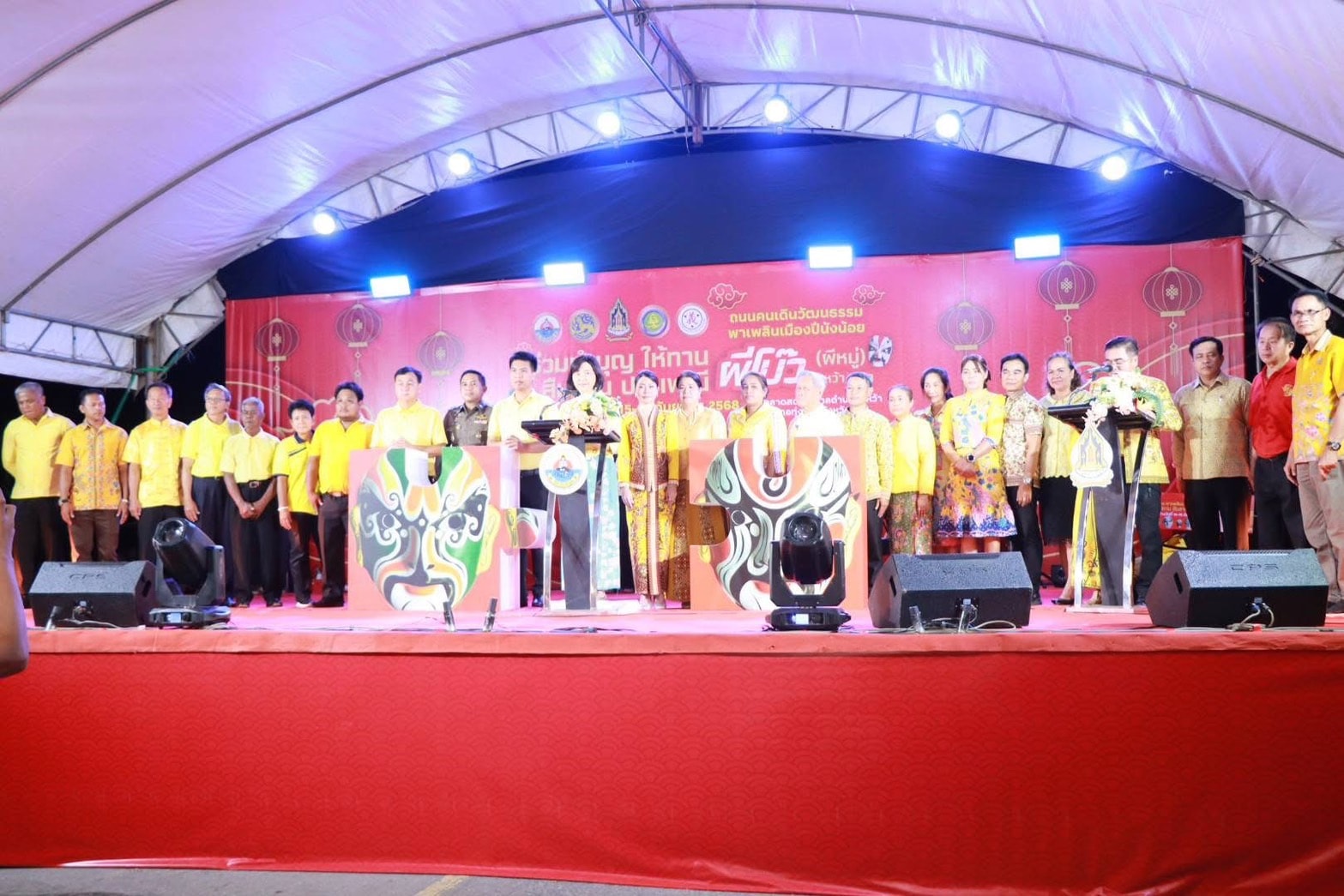 วันที่ 15 กันยายน 2568 เวลา 19.30 น. นางรัชดา เพชรรัตน์ ปฏิรูปที่ดินจังหวัดสตูล ร่วมงานวัฒนธรรมถนนคนเดิน “พาเพลินเมืองปีนังน้อย” สืบสานประเพณีผีโบ๊ว อำเภอทุ่งหว้า ณ บริเวณหน้าตลาดสดเทศบาลตำบลทุ่งหว้า อำเภอทุ่งหว้า จังหวัดสตูล โดย นายศักระ กปิลกาญจน์ ผู้ว่าราชการจังหวัดสตูล มอบหมายนางสาวดุษฎี พฤกษเศรษฐ รองผู้ว่าราชการจังหวัดสตูล เป็นประธานในพิธีเปิดงานวัฒนธรรมถนนคนเดิน “พาเพลินเมืองปีนังน้อย” ร่วมทำบุญ ให้ทาน และสืบสานประเพณีผีโบ๊ว (ผีหมู่) พร้อมด้วยนายกิตตพงษ์ แก้วยอดทอง วัฒนธรรมจังหวัดสตูล และหัวหน้าส่วนราชการ นายอำเภอ ผู้นำท้องที่ท้องถิ่น นักท่องเที่ยว และประชาชนเข้าร่วมงานเป็นจำนวนมาก บรรยากาศเป็นไปอย่างคึกคัก