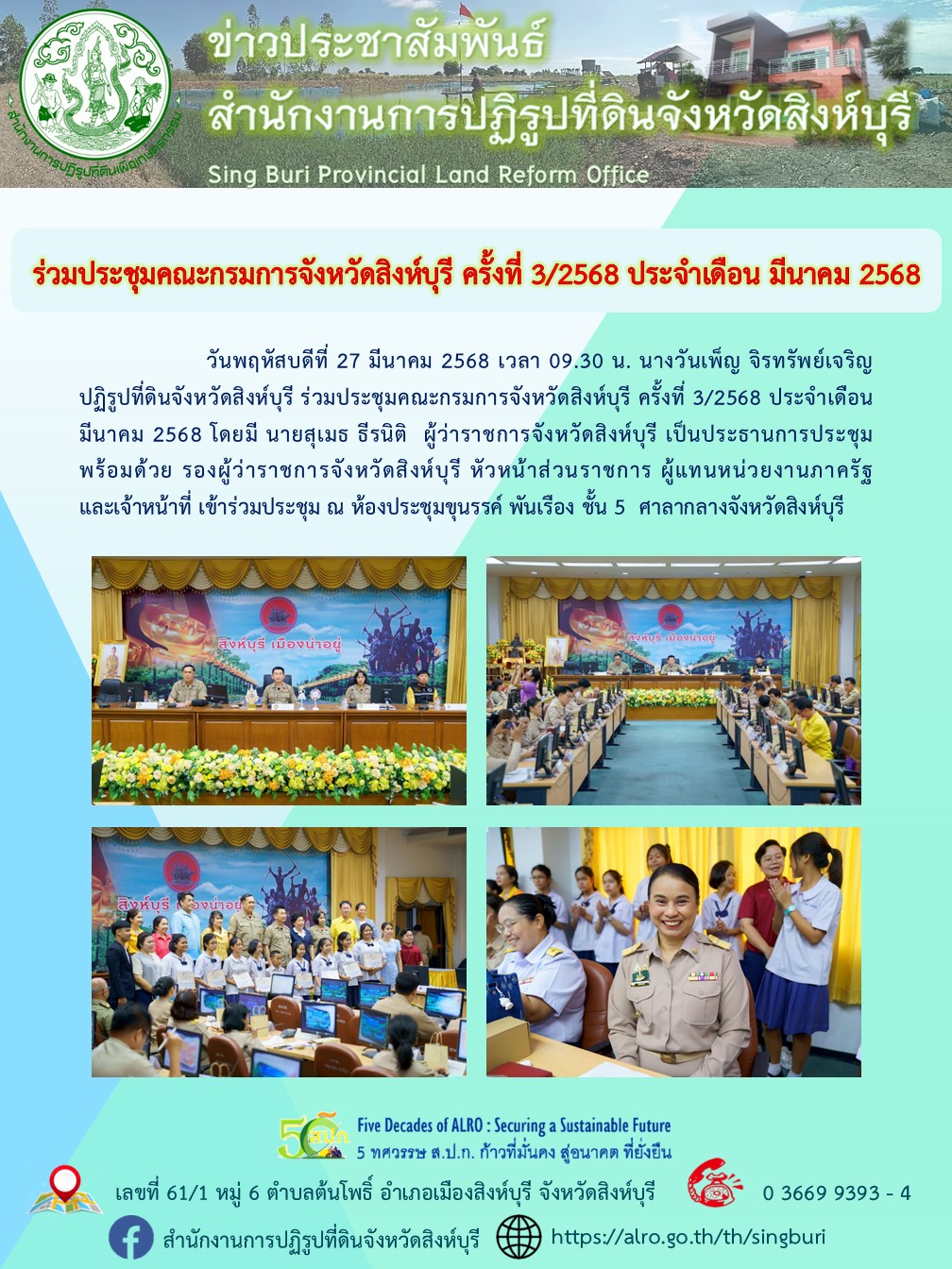 ประชุมคณะกรมการจังหวัดสิงห์บุรี ครั้งที่ 32568 ประจำเดือน มีนาคม 2568