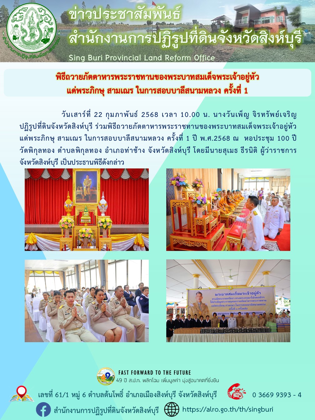 พิธีถวายภัตตาหารพระราชทานของพระบาทสมเด็จพระเจ้าอยู่หัว แด่พระภิกษุ สามเณร ในการสอบบาลีสนามหลวง ครั้งที่ 1