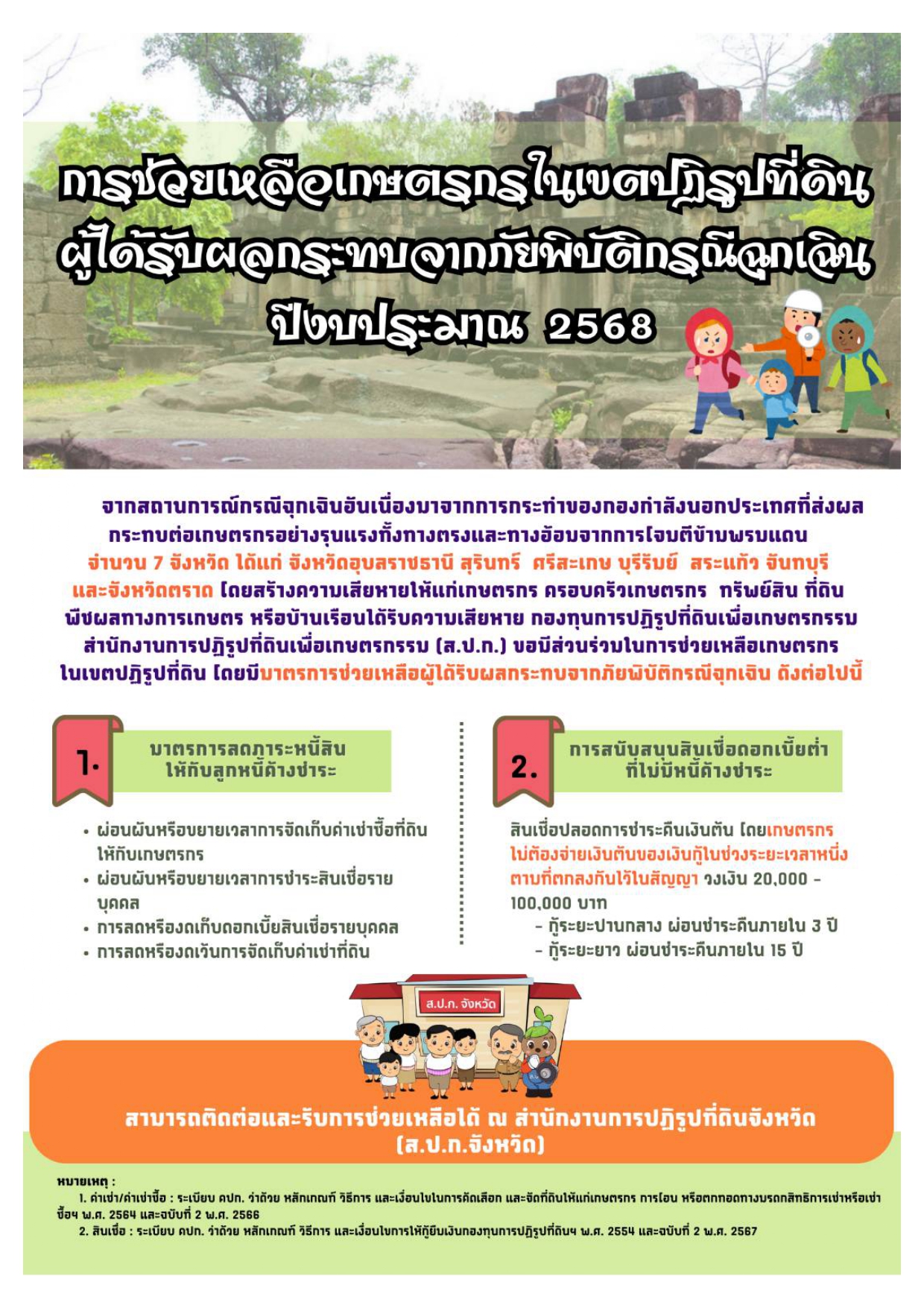การช่วยเหลือเกษตรกรในเขตปฏิรูปที่ดินผู้ได้รับผลกระทบจากภัยพิบัติกรณีฉุกเฉิน ปีงบประมาณ 2568