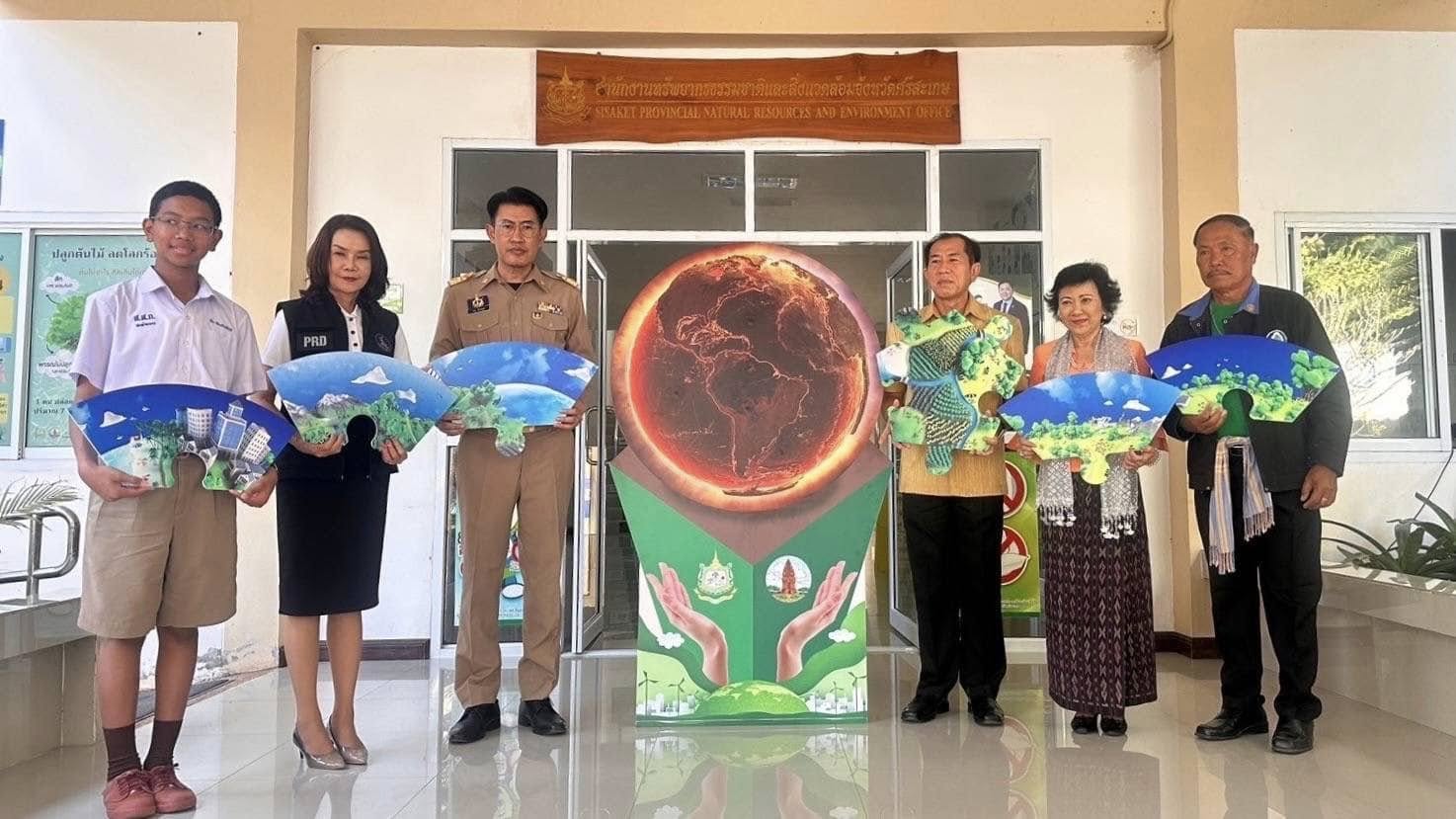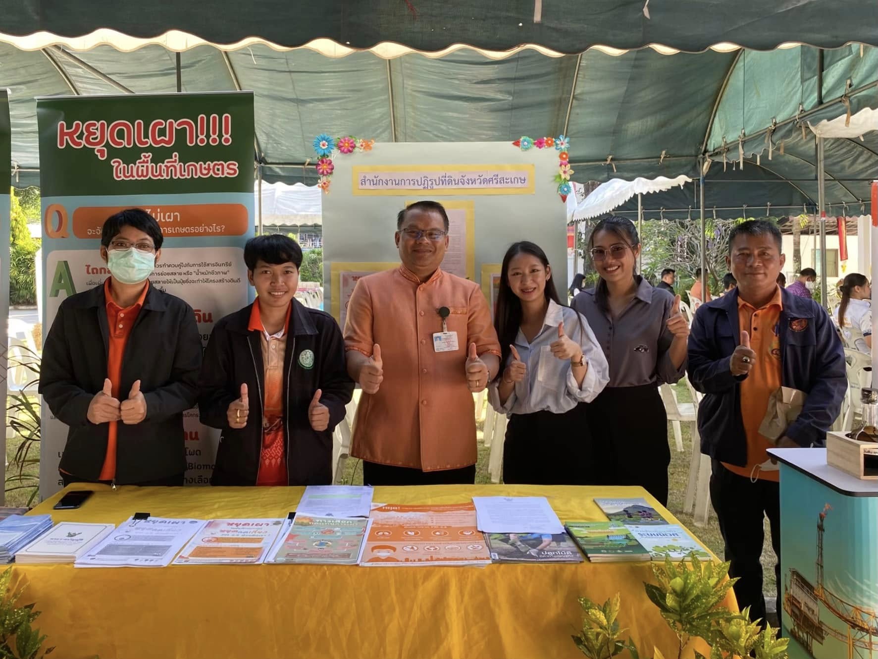 2 09.30 น. ปฏิรูปที่ดินจังหวัดศรีสะเกษ พร้อมด้วย เจ้าหน้าที่กลุ่มยุทธศาสตร์และการปฏิรูปที่ดิน ส.ป.ก.ศรีสะเกษ ร่วมพิธีและจัดนิทรรศการในงานเปิดศูนย์ประสานงานด้านการเปลี่ยนแปลงสภาพภูมิอากาศและความหลากหลายทางชีวภาพ จังหวัดศรีสะเกษ (Sisaket Provincial Climate Change and Biodiversity Coordination Center) ณ สำนักงานทรัพยากรธรรมชาติและสิ่งแวดล้อมจังหวัดศรีสะเกษ ทั้งนี้ เพื่อให้ศูนย์ประสานงานฯ ดังกล่าว เป็นหน่วยประสานบูรณาการงานและข้อมูลในระดับจังหวัด เป็นศูนย์การสื่อสาร สร้างความรู้ความเข้าใจ และความตระหนักถึงเรื่องการเปลี่ยนแปลงสภาพภูมิอากาศ ความหลากหลายทางชีวภาพ รวมถึงประเด็นด้านทรัพยากรธรรมชาติและสถานการณ์ด้านสิ่งแวดล้อม โดยมี นายกนก ชิยางคบุตร ผอ.ทสจ.ศรีสะเกษ เป็นผู้กล่าวรายงาน พร้อมนำผู้เข้าร่วมพิธีเยี่ยมชมนิทรรศการภายในศูนย์ฯ ซึ่งมีหัวหน้าส่วนราชการ หัวหน้าหน่วยงานรัฐวิสาหกิจ องค์กรปกครองส่วนท้องถิ่น สถาบันการศึกษา นักเรียน และเครือข่ายอาสาสมัครพิทักษ์ทรัพยากรธรรมชาติและสิ่งแวดล้อมจังหวัดศรีสะเกษเข้าร่วมงาน โดยมีนายนพ พงศ์ผลาดิสัย รองผู้ว่าราชการจังหวัดศรีสะเกษ เป็นประธานในพิธีเปิดศูนย์ฯ ดังกล่าว