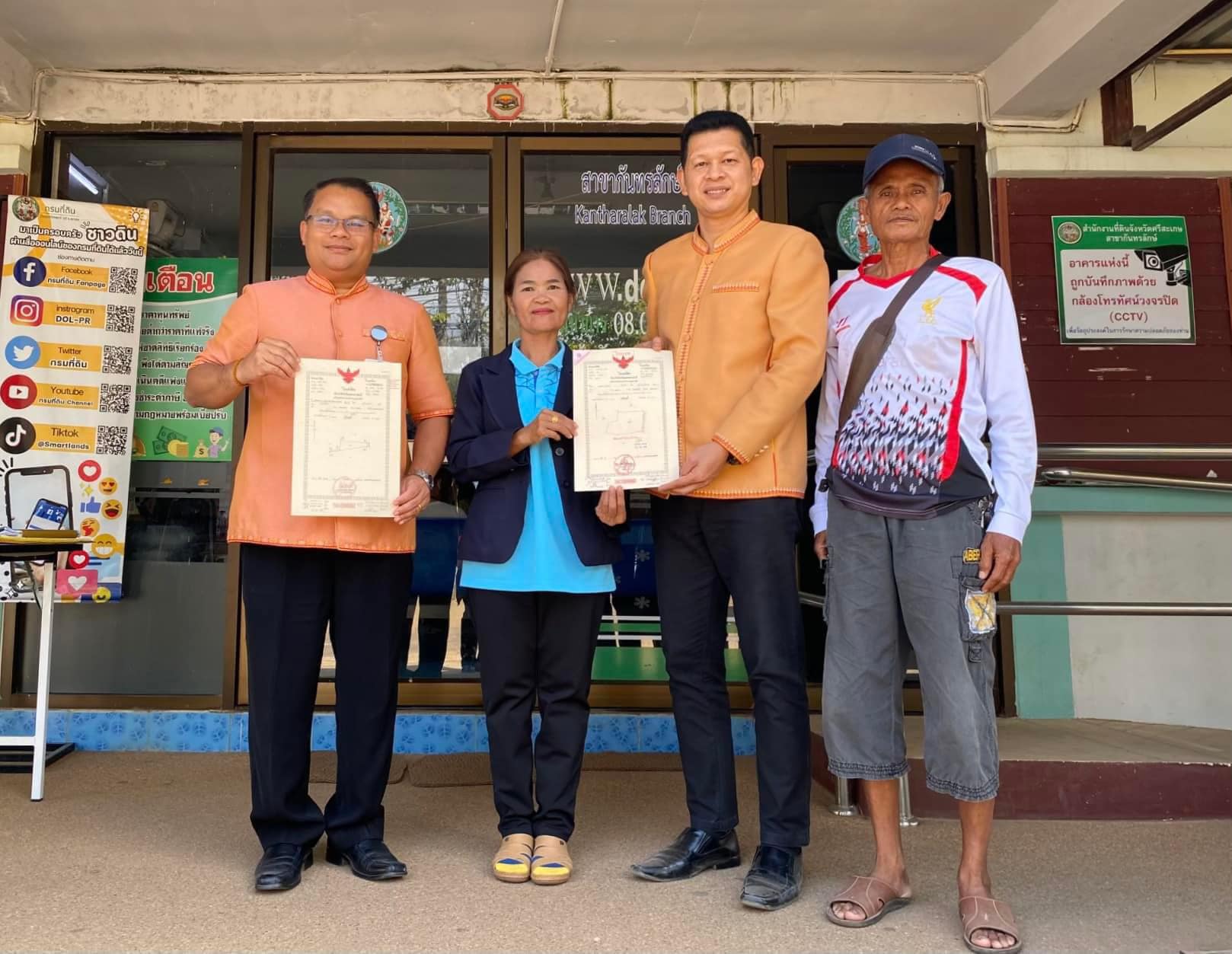 3. 13.30 น. พร้อมด้วย นายคมสันติ์ ศรีพรมรี เจ้าพนักงานที่ดินจังหวัดศรีสะเกษ สาขากันทรลักษ์ และนายวิศิษ มหาผล นิติกรชำนาญการพิเศษ ผู้อำนวยการกลุ่มกฎหมาย ส.ป.ก.ศรีสะเกษ ร่วมมอบโฉนดที่ดิน (น.ส.4 จ.) ณ สำนักงานที่ดินจังหวัดศรีสะเกษ สาขากันทรลักษ์ ให้แก่ราษฎรผู้ขายที่ดินให้ ส.ป.ก. ซึ่งได้รับการแบ่งแยกโฉนดที่ดินเป็นที่เรียบร้อย โดยที่ดินแปลงดังกล่าว ส.ป.ก.ศรีสะเกษ ได้จัดซื้อไว้ตั้งแต่ปี 2547 (จดทะเบียนประเภทกรรมสิทธิ์รวม) ปฏิรูปที่ดินจังหวัดศรีสะเกษ จึงได้ยื่นขอจดทะเบียนแบ่งแยกที่ดินดังกล่าวเมื่อวันที่ 10 ตุลาคม 2566 ทั้งนี้ ในการดำเนินการอาศัยอำนาจตามคำสั่งจังหวัดศรีสะเกษ ที่ 5434/2566 เรื่องการมอบอำนาจให้ปฏิบัติราชการแทนผู้ว่าราชการจังหวัดศรีสะเกษ ซึ่งการแก้ไขปัญหาครั้งนี้ ได้รับความร่วมมือและการบริการที่ดีเยี่ยมจากเจ้าพนักงานที่ดินจังหวัดศรีสะเกษ สาขากันทรลักษ์ และเจ้าหน้าที่ของสำนักงานที่ดินฯ