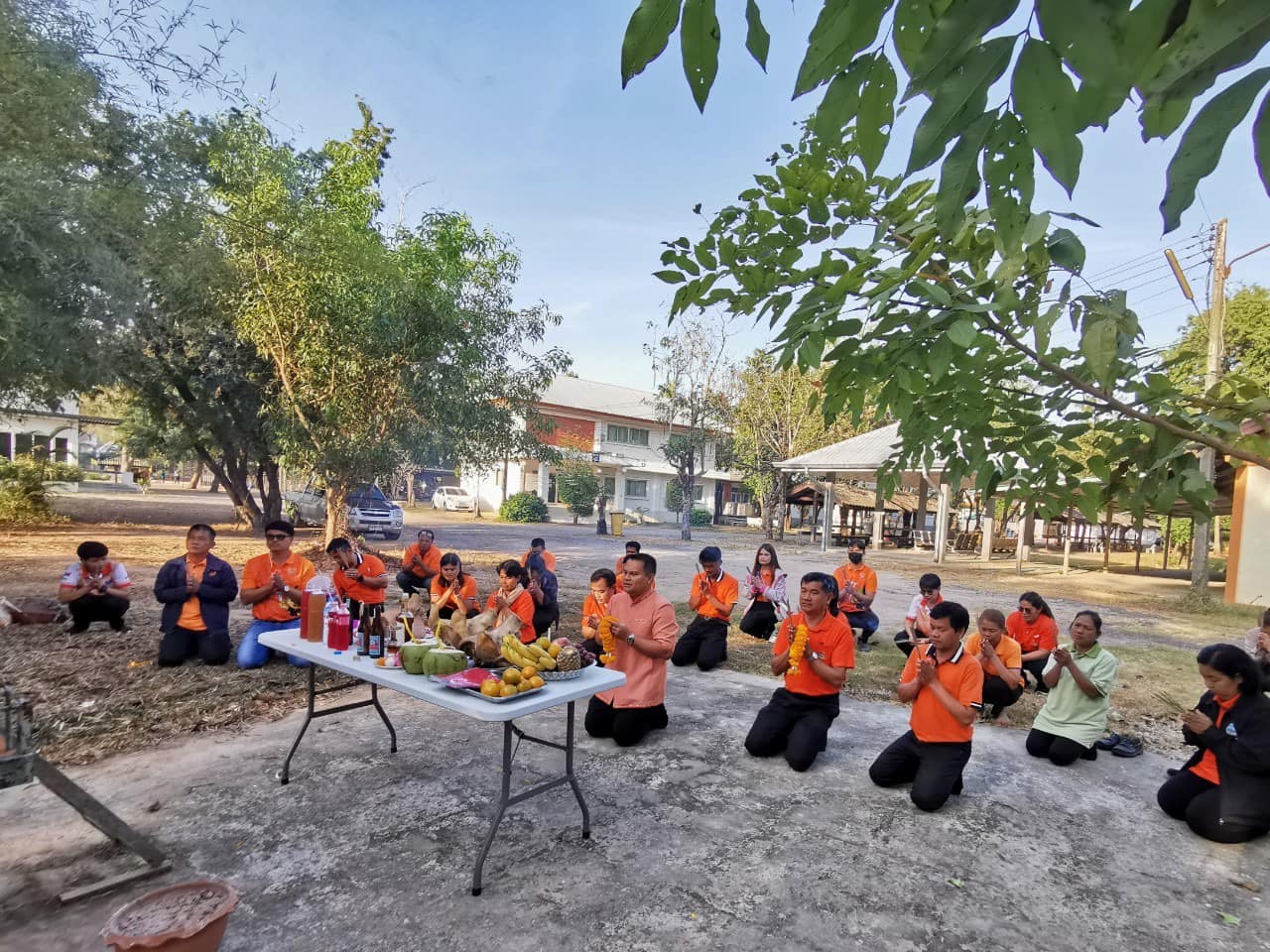 1. 07.30 น. พร้อมด้วย ผู้อำนวยการกลุ่ม หัวหน้าฝ่าย และข้าราชการ ลูกจ้างประจำ พนักงานราชการ พนักงานกองทุน พนักงานจ้างเหมาบริการ ส.ป.ก.ศรีสะเกษ ร่วมใจกันไหว้สักการะองค์พระชัยมงคลเจ้าหรือศาลพระภูมิ และไหว้สิ่งศักดิ์สิทธิ์ที่เคารพนับถือ ให้คุ้มครอง ปกปักรักษาให้บุคลากรของสำนักงานและครอบครัวทุกคนแคล้วคลาดปลอดภัยจากพยันตราย พร้อมให้มั่งมีศรีสุข สมัครสมานสามัคคี และผ่านพ้นปัญหาอุปสรรคทั้งปวง