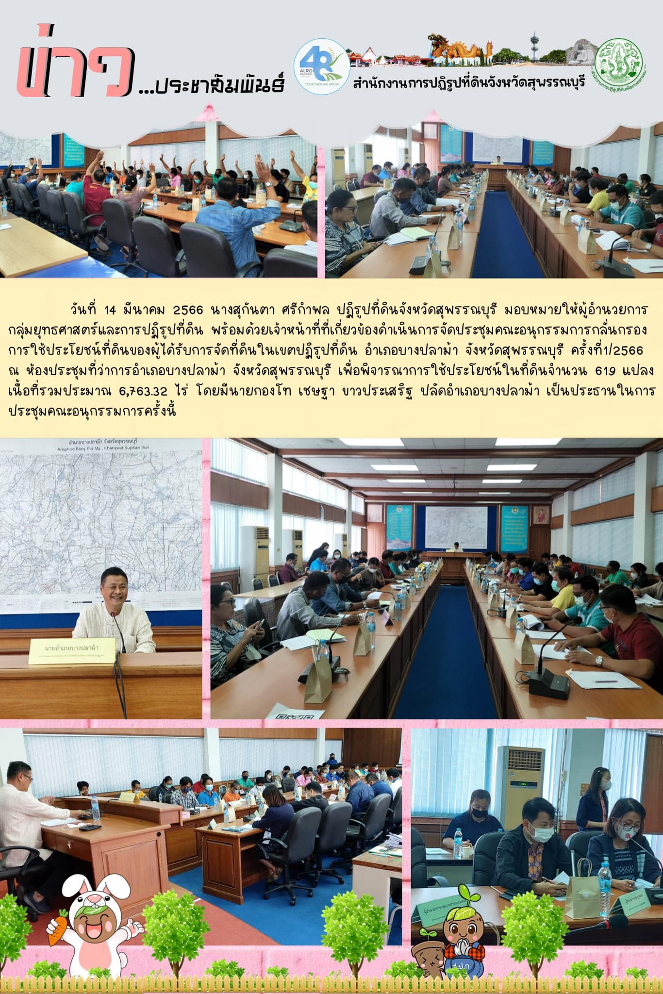 วันที่ 14 มีนาคม 2566 นางสุกันตา ศรีกำพล ปฏิรูปที่ดินจังหวัดสุพรรณบุรี มอบหมายให้ผู้อำนวยการกลุ่มยุทธศาสตร์และการปฏิรูปที่ดิน พร้อมด้วยเจ้าหน้าที่ที่เกี่ยวข้องดำเนินการจัดประชุมคณะอนุกรรมการกลั่นกรองการใช้ประโยชน์ที่ดินของผู้ได้รับการจัดที่ดินในเขตปฏิรูปที่ดิน อำเภอบางปลาม้า จังหวัดสุพรรณบุรี ครั้งที่1/2566 ณ ห้องประชุมที่ว่าการอำเภอบางปลาม้า จังหวัดสุพรรณบุรี เพื่อพิจารณาการใช้ประโยชน์ในที่ดินจำนวน 619 แปลง เนื้อที่รวมประมาณ 6,763.32 ไร่ โดยมีนายกองโท เชษฐา ขาวประเสริฐ ปลัดอำเภอบางปลาม้า เป็นประธานในการประชุมคณะอนุกรรมการครั้งนี้