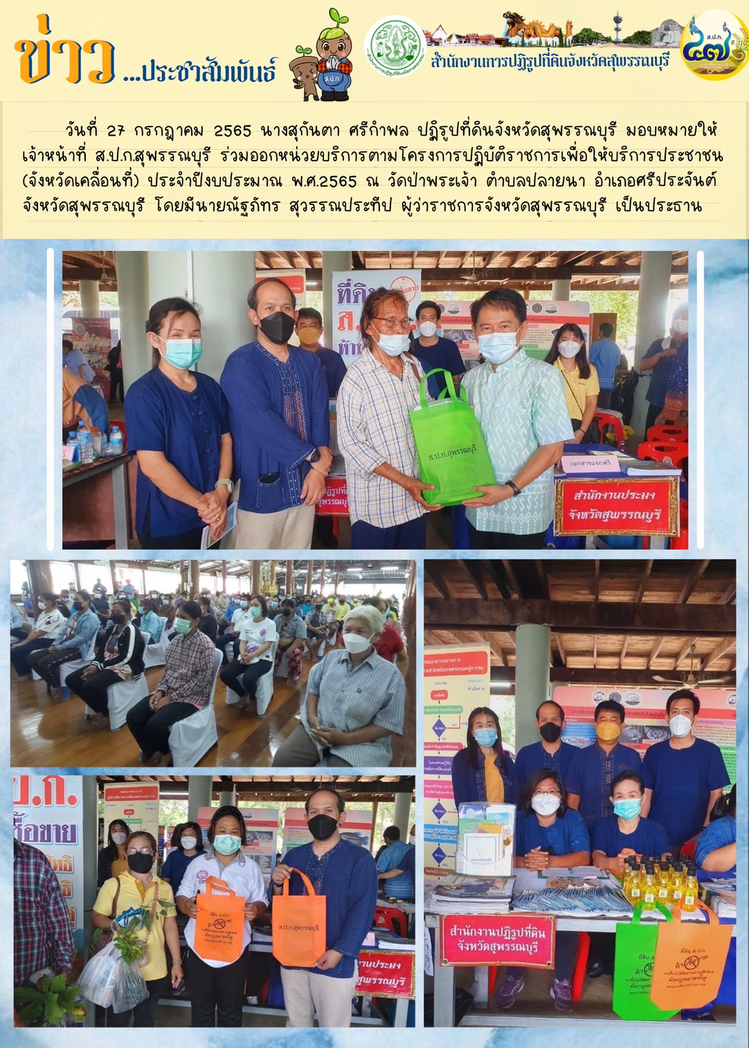 ปฏิรูปที่ดินจังหวัดสุพรรณบุรี มอบหมายให้เจ้าหน้าที่ ส.ป.ก.สุพรรณบุรี ร่วมออกหน่วยงานบริการตามโครงการปฏิบัติราชการเพื่อให้บริการประชาชน (จังหวัดเคลื่อนที่) ประจำปีงบประมาณ พ.ศ. 2565
