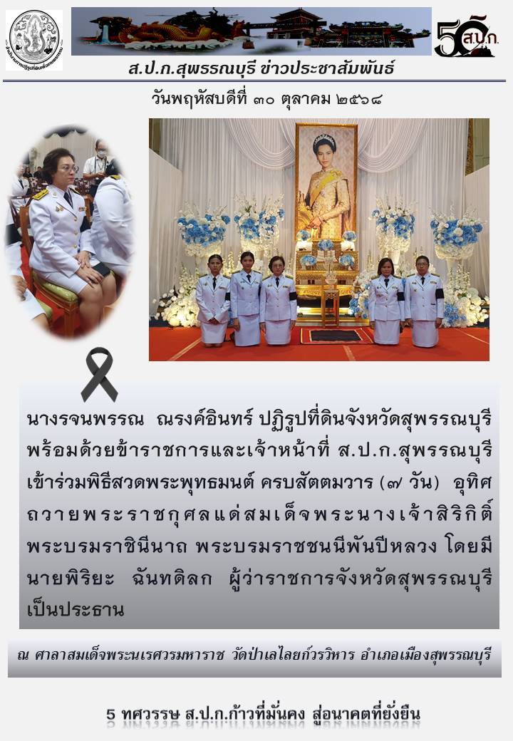 ภาพข่าว ส.ป.ก.สุพรรณบุรี เข้าร่วมพิธีสวดพระพุทธมนต์ ครบสัตตมวาร (7 วัน) อุทิศถวายพระราชกุศลแด่สมเด็จพระนางเจ้าสิริกิติ์ พระบรมราชินีนาถ พระบรมราชชนนีพันปีหลวงฯ