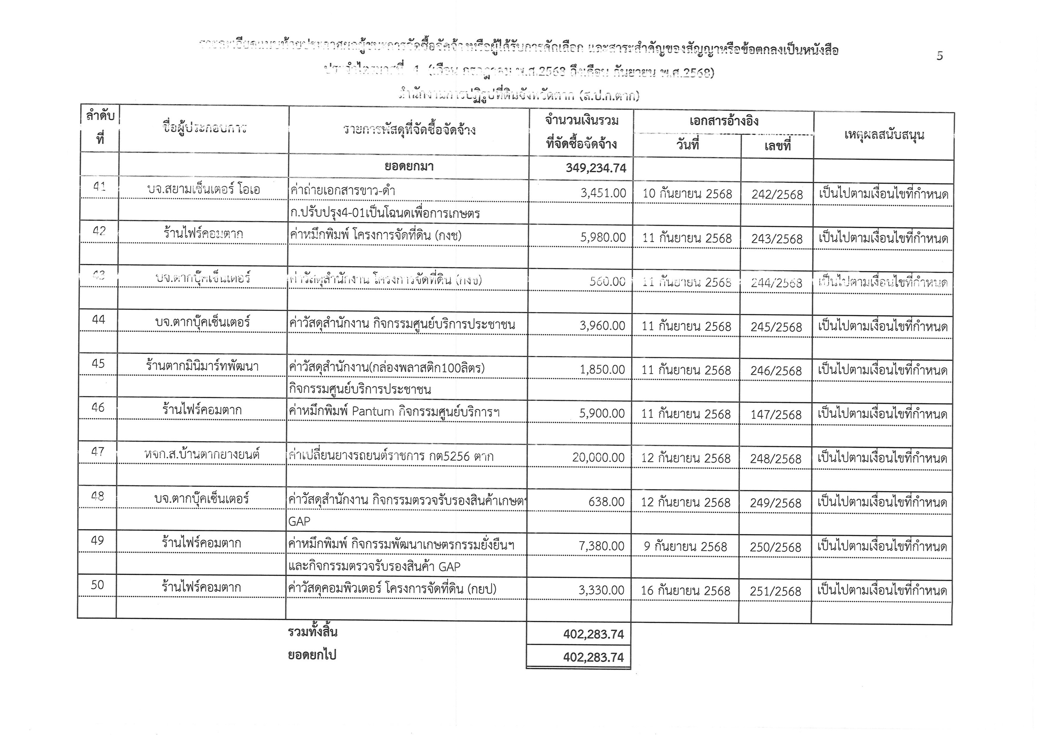 สรุปผลการดำเนินการจัดซื้อจัดจ้างประจำเดือนกันยายน 2568 ตามแบบ สขร.1