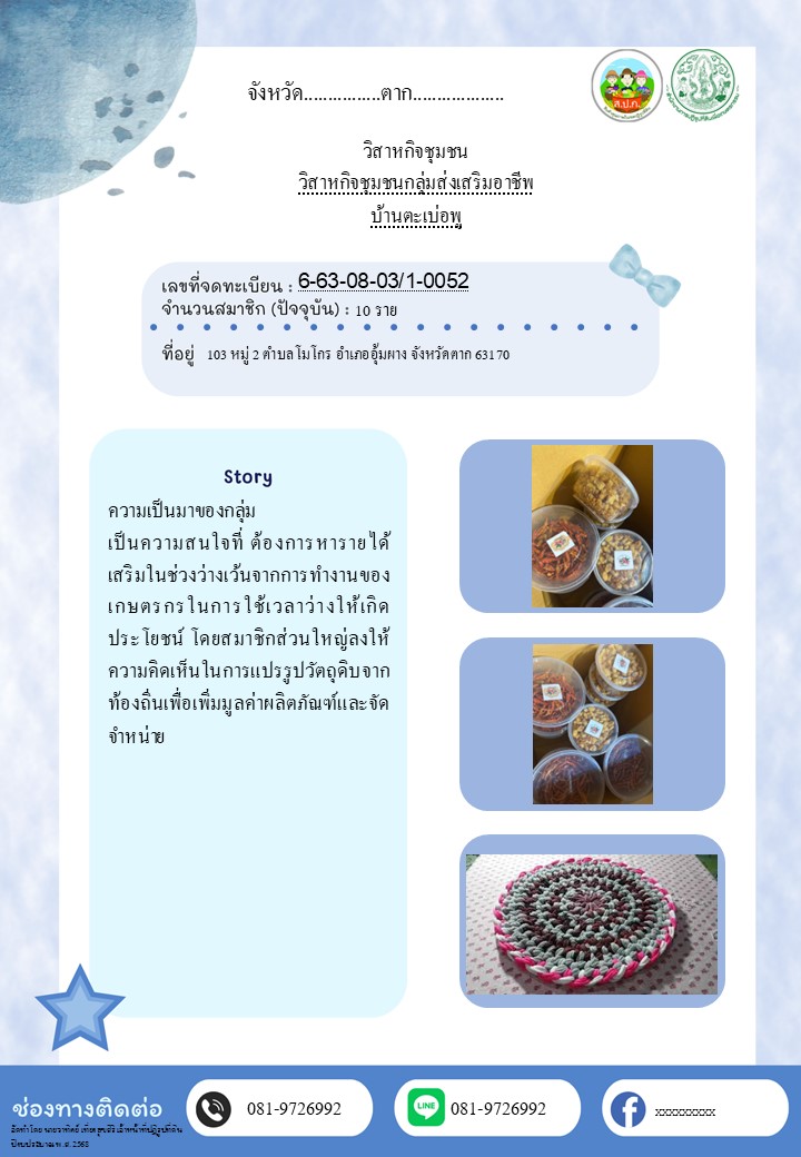 3. วิสาหกิจชุมชนกลุ่มส่งเสริมอาชีพ บ้านตะเบ่อพู ต.โมโกร อ.อุ้มผาง จ.ตาก