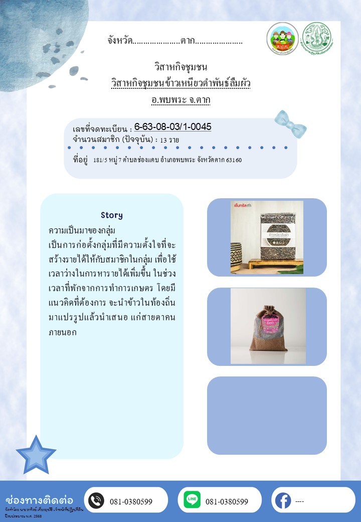 6. วิสาหกิจชุมชนข้าวเหนียวดำพันธ์ลืมผัว ต.ช่องแคบ อ.พบพระ จ.ตาก