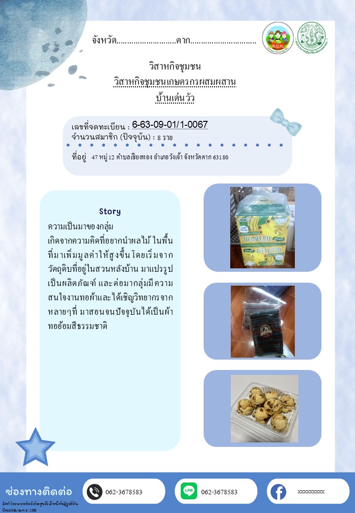 2. วิสาหกิจชุมชนเกษตรกรผสมผสาน บ้านเด่นวัว ต.เชียงทอง อ.วังเจ้า จ.ตาก