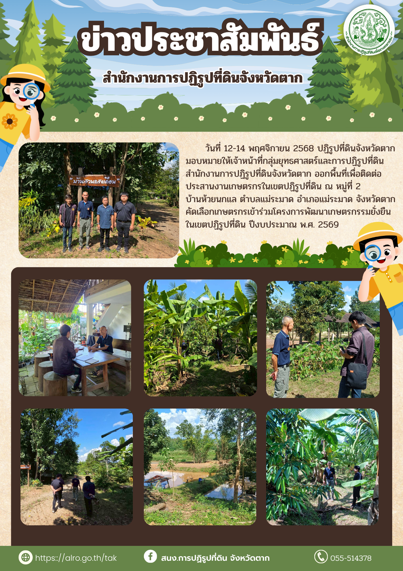 สำนักงานการปฏิรูปที่ดินจังหวัดตาก ประสานงานเกษตรกรเข้าร่วมโครงการพัฒนาเกษตรกรรมยั่งยืนในเขตปฏิรูปที่ดิน ปีงบประมาณ พ.ศ.2569