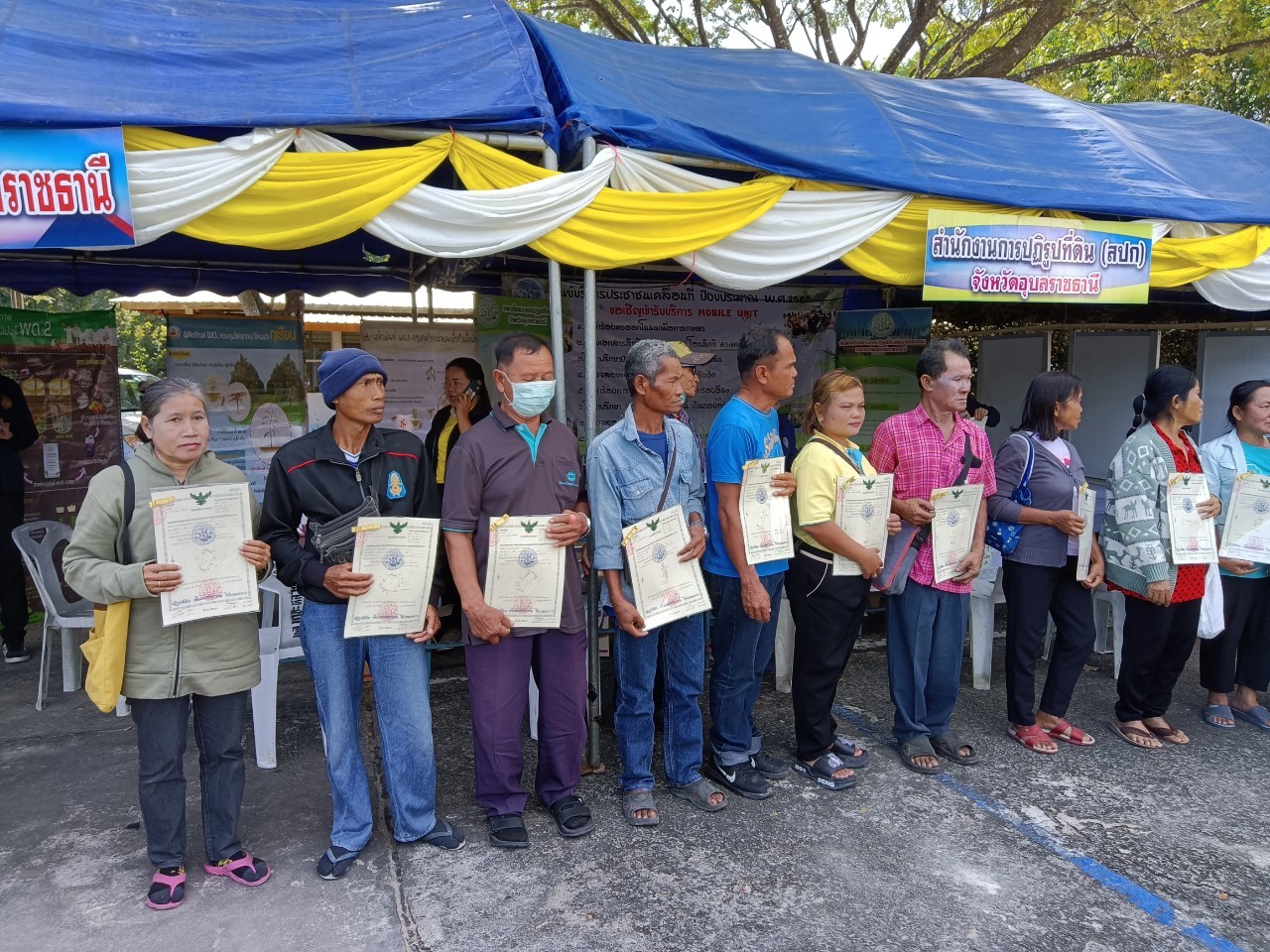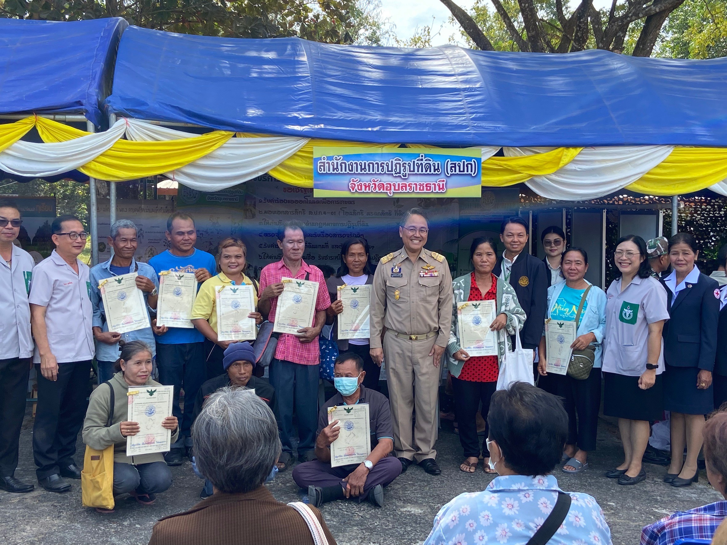วันที่ 12 ธันวาคม 2567 สำนักงานการปฏิรูปที่ดินจังหวัดอุบลราชธานี เข้าร่วมพิธีกิจกรรมออกปฏิบัติงานของหน่วยแพทย์เคลื่อนที่ พอ.สว.จังหวัดอุบลราชธานี ประจำปีงบประมาณ พ.ศ.2568 พร้อมทั้งให้แนวทางสิทธิและหน้าที่ของเกษตรผู้ได้รับมอบโฉนดเพื่อการเกษตร ทั้งนี้ ยังได้รับเกียรติจาก ร้อยตรี สรมงคล มงคละสิริ รองผู้ว่าราชการจังหวัดอุบลราชธานี มอบโฉนดเพื่อการเกษตรให้กับเกษตรกร จำนวน 105 ราย 107 แปลง ณ โรงเรียนบ้านดงขวางคำโทน หมู่ที่ 4 ต.นาจะหลวย อ.นาจะหลวย จ.อุบลราชธานี