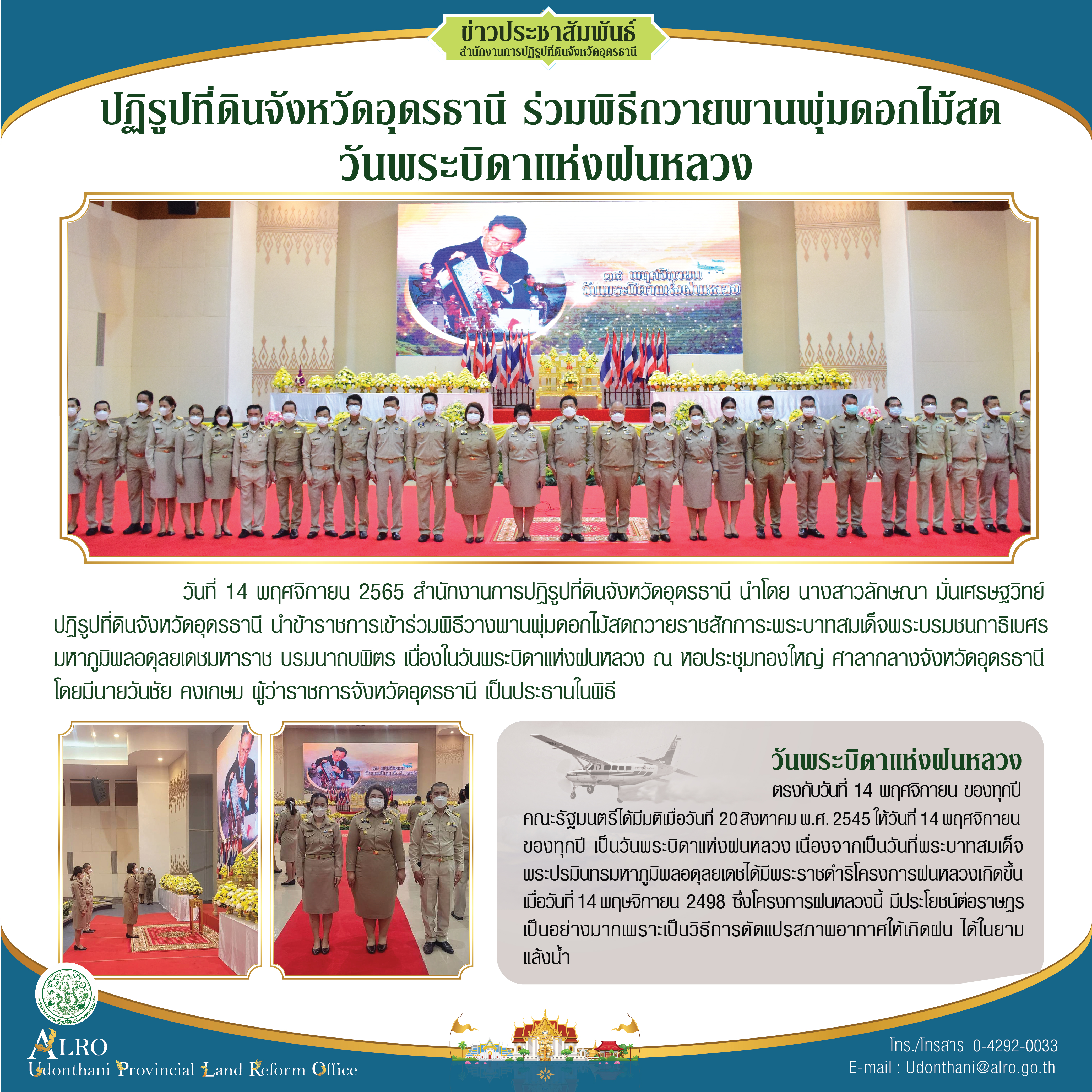วันที่ 14 พฤศจิกายน 2565 สำนักงานการปฏิรูปที่ดินจังหวัดอุดรธานี นำโดย นางสาวลักษณา มั่นเศรษฐวิทย์ ปฏิรูปที่ดินจังหวัดอุดรธานี