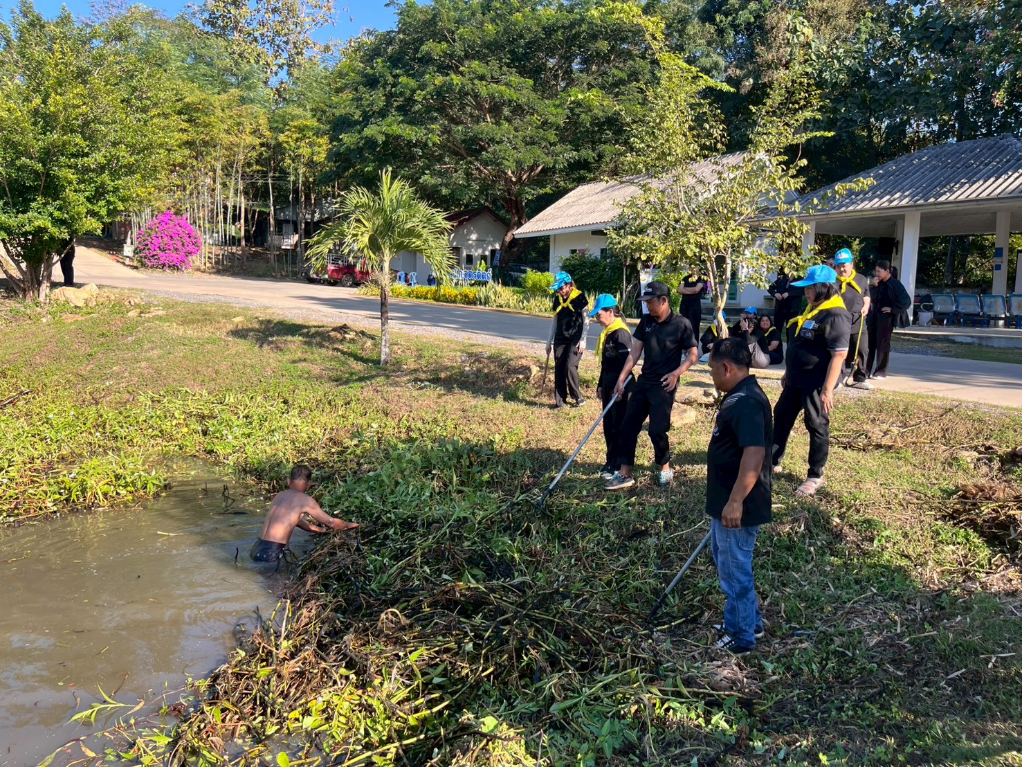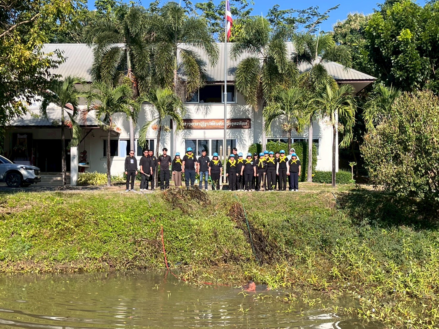 วันจันทร์ที่ ๑ ธันวาคม ๒๕๖๘ เวลา ๑๕.๐๐ น. สำนักงานการปฏิรูปที่ดินจังหวัดอุตรดิตถ์ โดย นางกรรณิการ์ พึ่งเงิน ปฏิรูปที่ดินจังหวัดอุตรดิตถ์ พร้อมด้วย เจ้าหน้าที่ ส.ป.ก.อุตรดิตถ์ จัดกิจกรรมจิตอาสาเพื่อขับเคลื่อนโครงการ “หนึ่งความดี ล้านความรัก ภูมิใจภักดิ์พระพันปีหลวง” ในกิจกรรม “ส.ป.ก.อุตรดิตถ์ ร่วมใจ พัฒนาสระใส สร้างพื้นที่สาธารณะงามตา ถวายพระพันปีหลวง” ซึ่งสำนักงานการปฏิรูปที่ดินจังหวัดอุตรดิตถ์เล็งเห็นว่า สระน้ำบริเวณหน้าสำนักงานเป็นพื้นที่สาธารณะที่ควรได้รับการดูแลรักษาให้มีสภาพภูมิทัศน์ที่ดี ดูสะอาดสวยงาม และเป็นระเบียบเรียบร้อย แต่ปัจจุบันมีวัชพืชขึ้นปกคลุมหนาแน่น ส่งผลต่อทัศนียภาพและความสะอาดของน้ำ จึงได้จัดกิจกรรมให้เจ้าหน้าที่ได้ร่วมกันทำความสะอาดและพัฒนาพื้นที่ดังกล่าว เพื่อเป็นการบำเพ็ญความดีถวายเป็นพระราชกุศลแด่สมเด็จพระนางเจ้าสิริกิติ์ พระบรมราชินีนาถ พระบรมราชชนนีพันปีหลวง ณ สำนักงานการปฏิรูปที่ดินจังหวัดอุตรดิตถ์