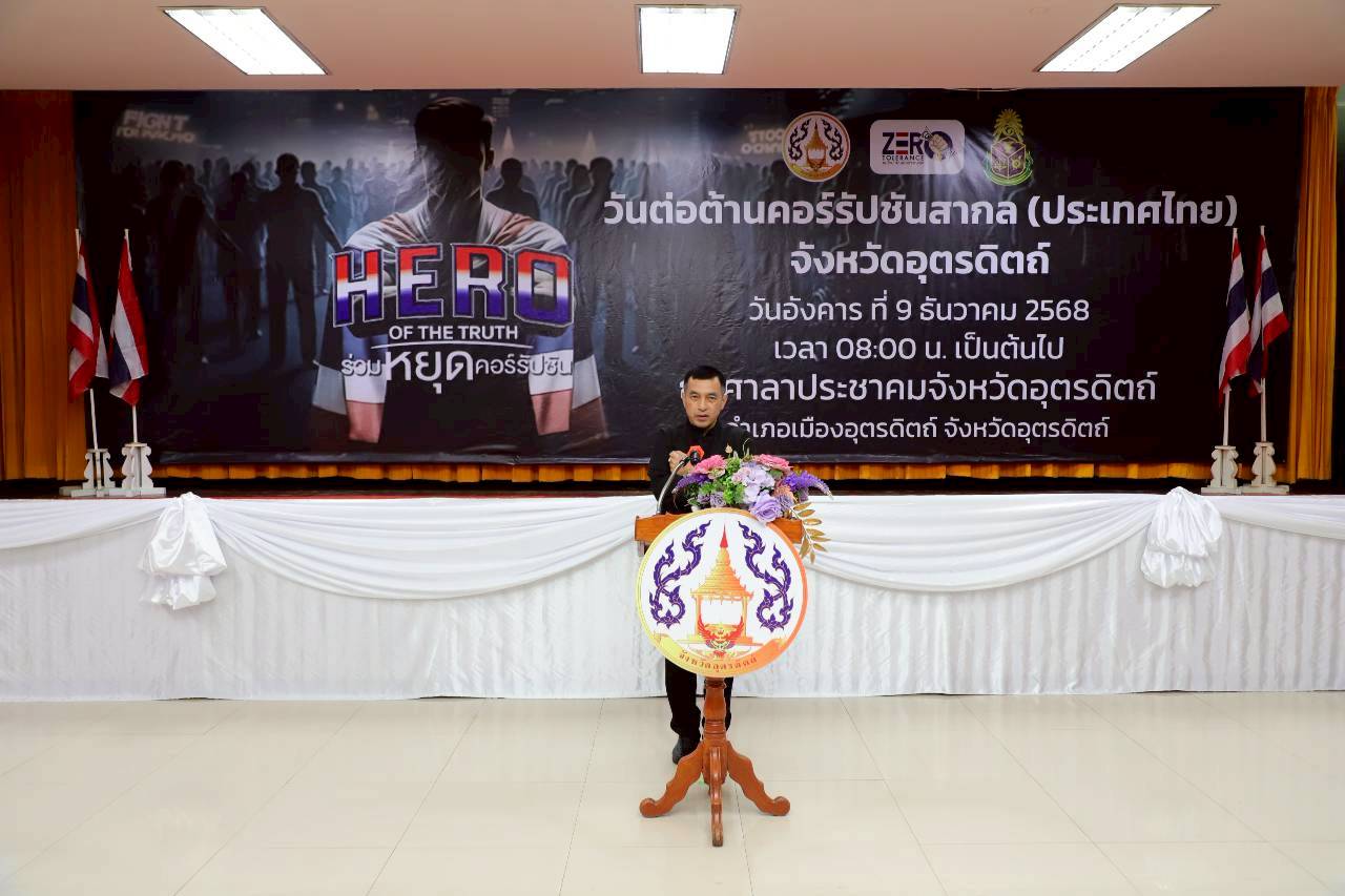 วันอังคารที่ ๙ ธันวาคม ๒๕๖๘ เวลา ๐๘.๐๐ น. สำนักงานการปฏิรูปที่ดินจังหวัดอุตรดิตถ์ โดย นางกรรณิการ์ พึ่งเงิน ปฏิรูปที่ดินจังหวัดอุตรดิตถ์ พร้อมด้วย นางสาวกนกวรรณ ศิลาคชสาร เจ้าพนักงานธุรการชำนาญงาน ร่วมแสดงสัญลักษณ์ต่อต้านการทุจริต ในงานวันต่อต้านคอร์รัปชันสากล (ประเทศไทย) ณ ศาลาประชาคมจังหวัดอุตรดิตถ์ โดยมี นายสันติ รังษิรุจิ ผู้ว่าราชกาจังหวัดอุตรดิตถ์ เป็นประธาน พร้อมกันนี้เจ้าหน้าที่ ส.ป.ก.อุตรดิตถ์ ร่วมรับชมการถ่ายทอดสดการจัดกิจกรรมดังกล่าว ผ่านทาง Facebook สำนักงาน ป.ป.ช. โดยมี นายอนุทิน ชาญวีรกูล นายกรัฐมนตรี เป็นประธานเปิดงาน พร้อมทั้งเชิญชวนคนไทยทั้งประเทศร่วมแสดงพลัง “HERO OF THE TRUTH : ร่วมหยุดคอร์รัปชันและเป็นฮีโร่แห่งความจริง ขับเคลื่อนสังคมไทยสู่อนาคตโปร่งใสและยั่งยืน เคียงข้างสังคมโลก