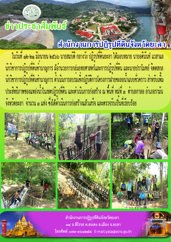 โครงการฝายชะลอน้ำแบบชั่วคราว สำหรับเพิ่มประสิทธิภาพของแหล่งน้ำในเขตปฏิรูปที่ดิน ตำบลกาลอ อำเภอรามัน จังหวัดยะลา จำนวน 3 แห่ง