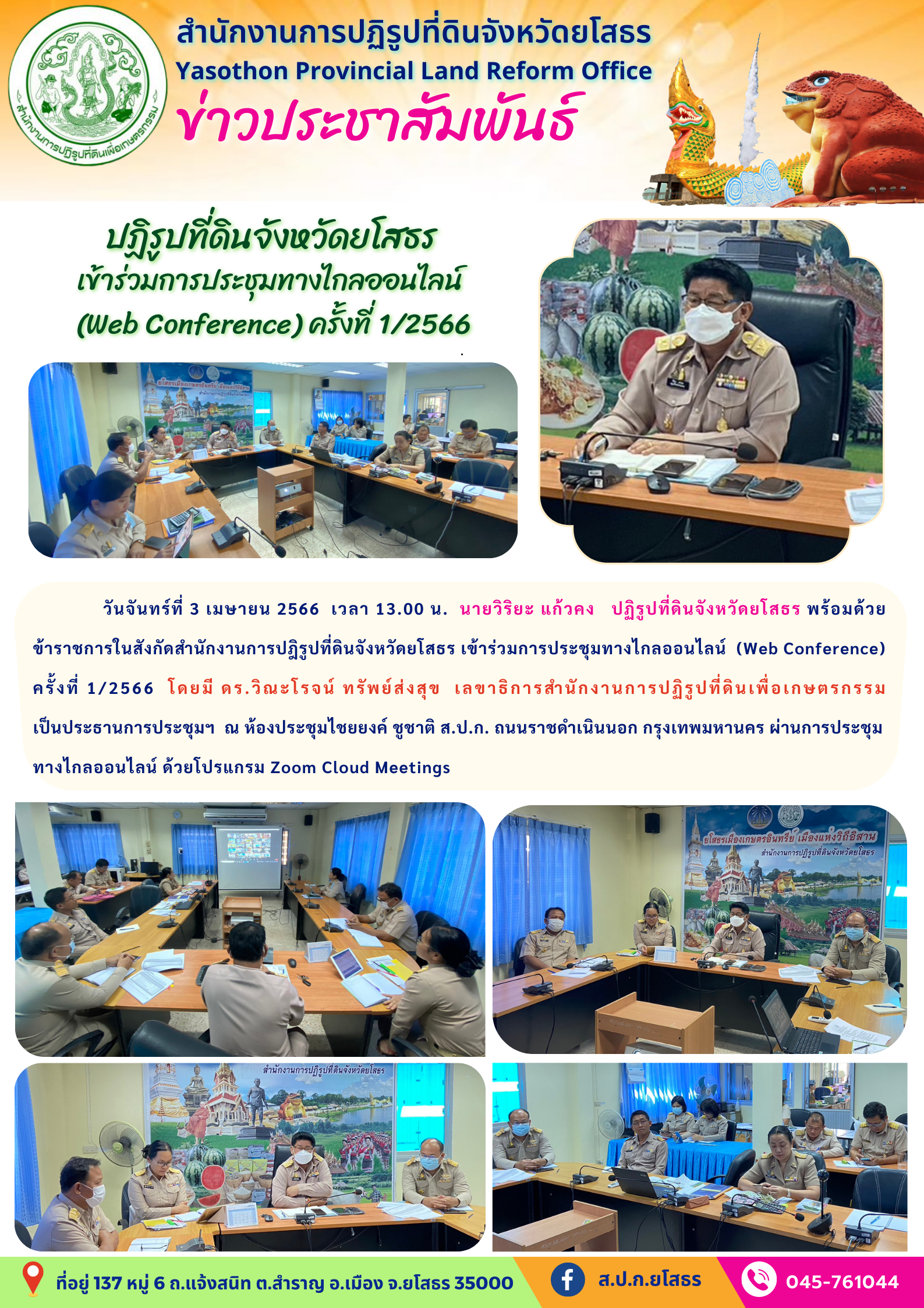 ปฏิรูปที่ดินจังหวัดยโสธร เข้าร่วมการประชุมทางไกลออนไลน์ (Web Conference) ครั้งที่ 1/2566