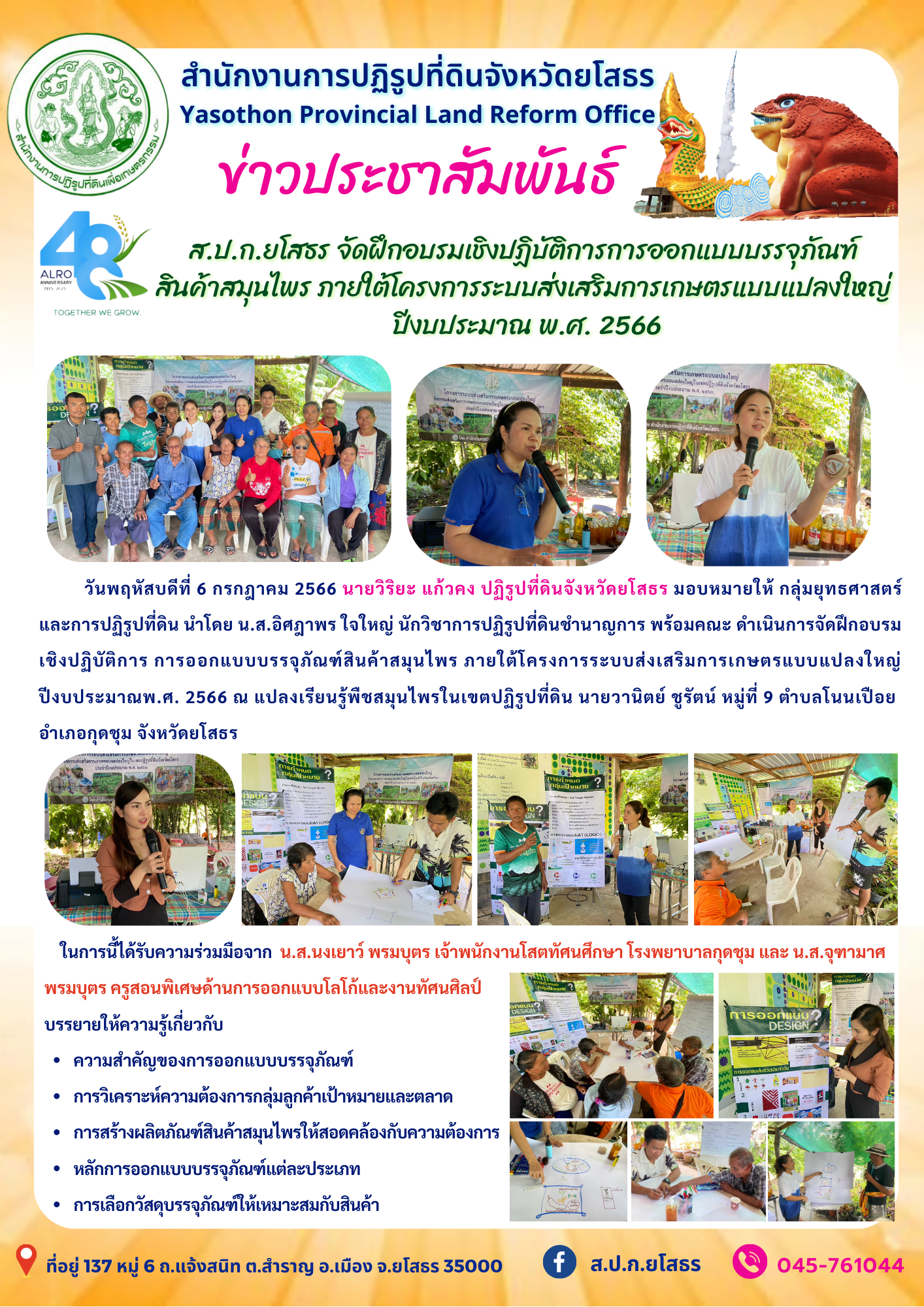 ส.ป.ก.ยโสธร จัดฝึกอบรมเชิงปฏิบัติการการออกแบบบรรจุภัณฑ์
