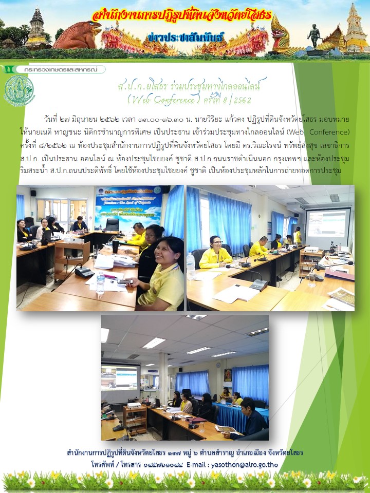 สำนักงานการปฏิรูปที่ดินจังหวัดยโสธร ร่วมประชุมทางไกลออนไลน์ (Web Confererce) ครั้งที่ 8/2562