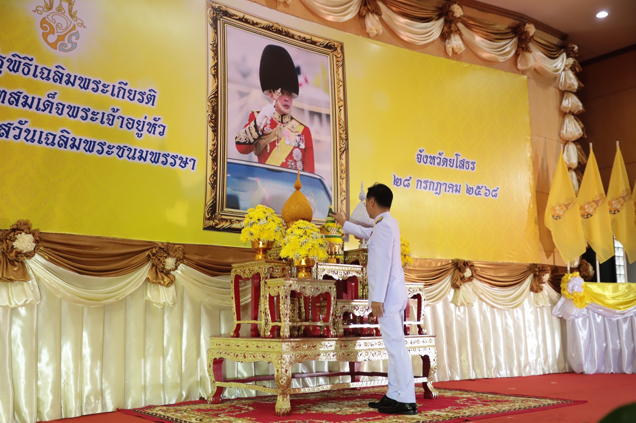 วันที่ 28 กรกฎาคม 2568 นางสาวกุหลาบ สุนนท์ ปฏิรูปที่ดินจังหวัดยโสธร นำข้าราชการ และเจ้าหน้าที่ในสังกัด ร่วมกิจกรรมเฉลิมพระเกียรติพระบาทสมเด็จพระเจ้าอยู่หัว เนื่องในโอกาสวันเฉลิมพระชนมพรรษา 28 กรกฎาคม 2568 เริ่มต้นด้วยพิธีเจริญพระพุทธมนต์ ทำบุญตักบาตรข้าวสารอาหารแห้งแด่พระภิกษุสงฆ์และสามเณร จำนวน 74 รูป ถวายเป็นพระราชกุศล จากนั้นกล่าวถวายสัตย์ปฏิญาณ เพื่อเป็นข้าราชการที่ดีและพลังของแผ่นดิน โดยมี นายชาญชัย ศรศรีวิชัย ผู้ว่าราชการจังหวัดยโสธร เป็นประธานในพิธี ณ หอประชุมศาลากลางจังหวัดยโสธร อำเภอเมืองยโสธร จังหวัดยโสธร