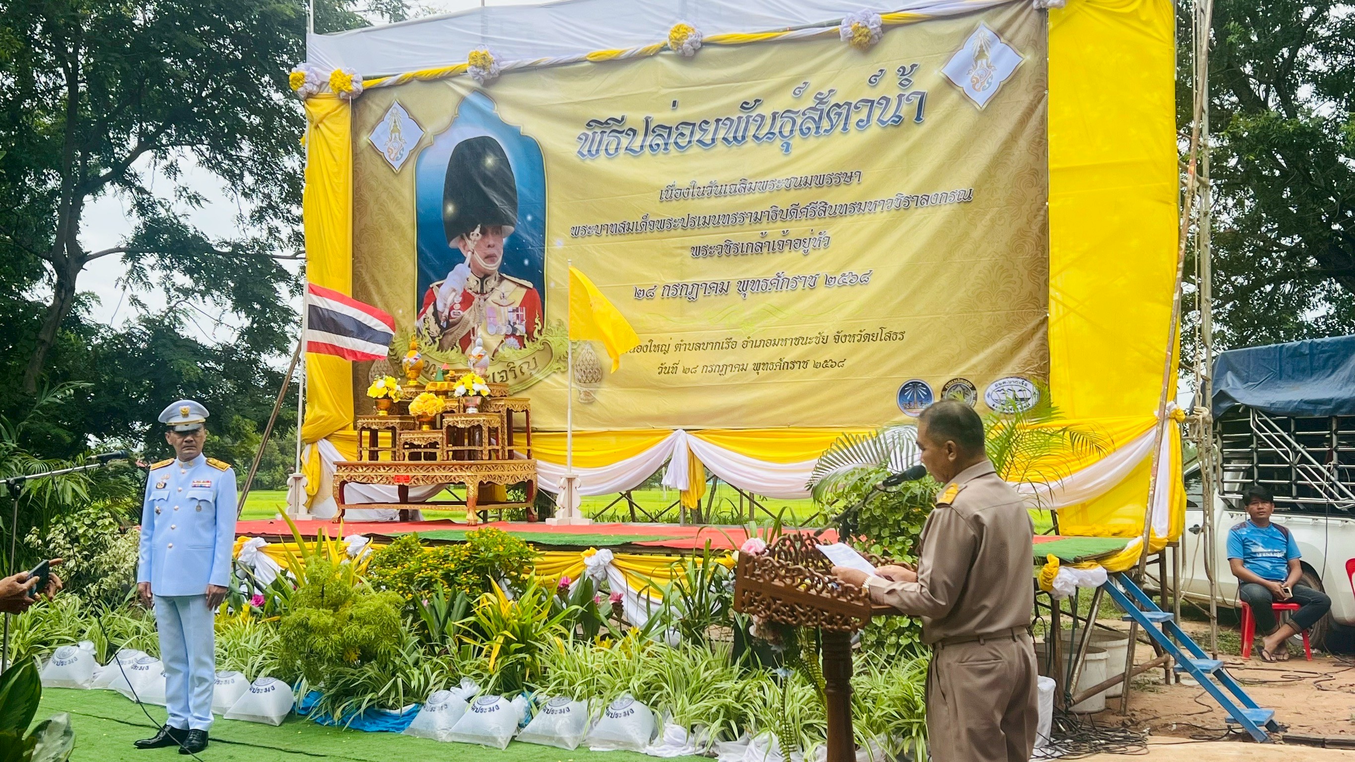 วันที่ 28 กรกฎาคม 2568 เวลา 10.30 น. นางสาวกุหลาบ สุนนท์ ปฏิรูปที่ดินจังหวัดยโสธร นำข้าราชการและเจ้าหน้าที่ในสังกัด ร่วมพิธีปล่อยพันธุ์สัตว์น้ำ จำนวน 200,000 ตัว เพื่อเฉลิมพระเกียรติพระบาทสมเด็จพระเจ้าอยู่หัว เนื่องในโอกาสวันเฉลิมพระชนมพรรษา 28 กรกฎาคม 2568 โดยมี นายชาญชัย ศรศรีวิชัย ผู้ว่าราชการจังหวัดยโสธร เป็นประธานในพิธี ณ หนองใหญ่ หมู่ที่ 9 บ้านบากเรือ ตำบลบากเรือ อำเภอมหาชนะชัย จังหวัดยโสธร