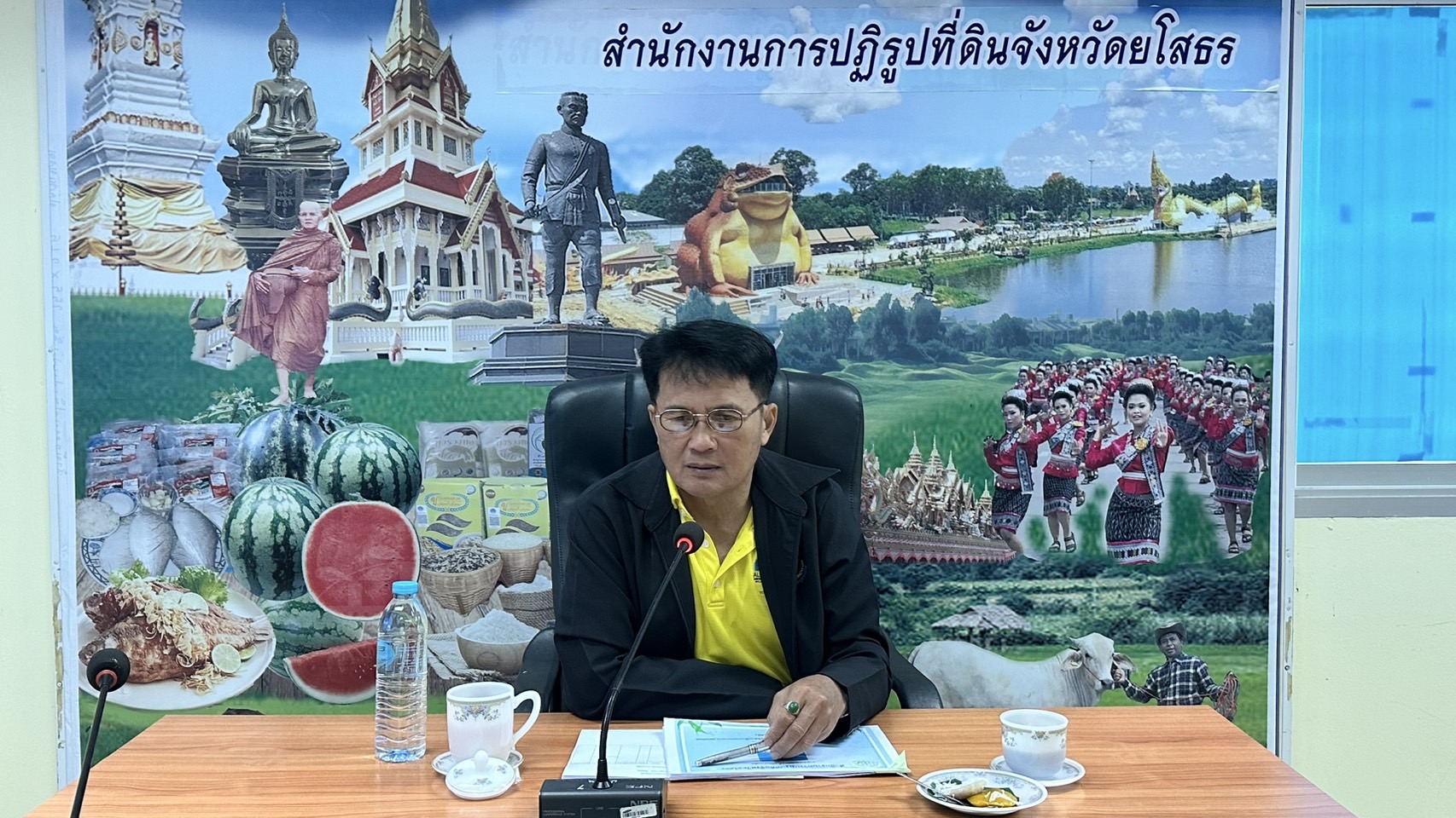 วันที่ 5 สิงหาคม 2568 นางสาวกุหลาบ สุนนท์ ปฏิรูปที่ดินจังหวัดยโสธร และข้าราชการ ส.ป.ก.ยโสธร ร่วมประชุมการตรวจราชการ ติดตามงานตามแผนการตรวจราชการของผู้ตรวจราชการกรม (นายประพันธ์ คำบาง) ประจำปีงบประมาณ พ.ศ.2568 รอบที่ 2 เขตตรวจราชการที่ 14 โดย ปทจ.ยโสธร ได้รายงานผลการดำเนินงานรายโครงการ/กิจกรรม และรายงานปัญหา และอุปสรรคในการดำเนินงาน ณ ห้องประชุม ส.ป.ก.ยโสธร