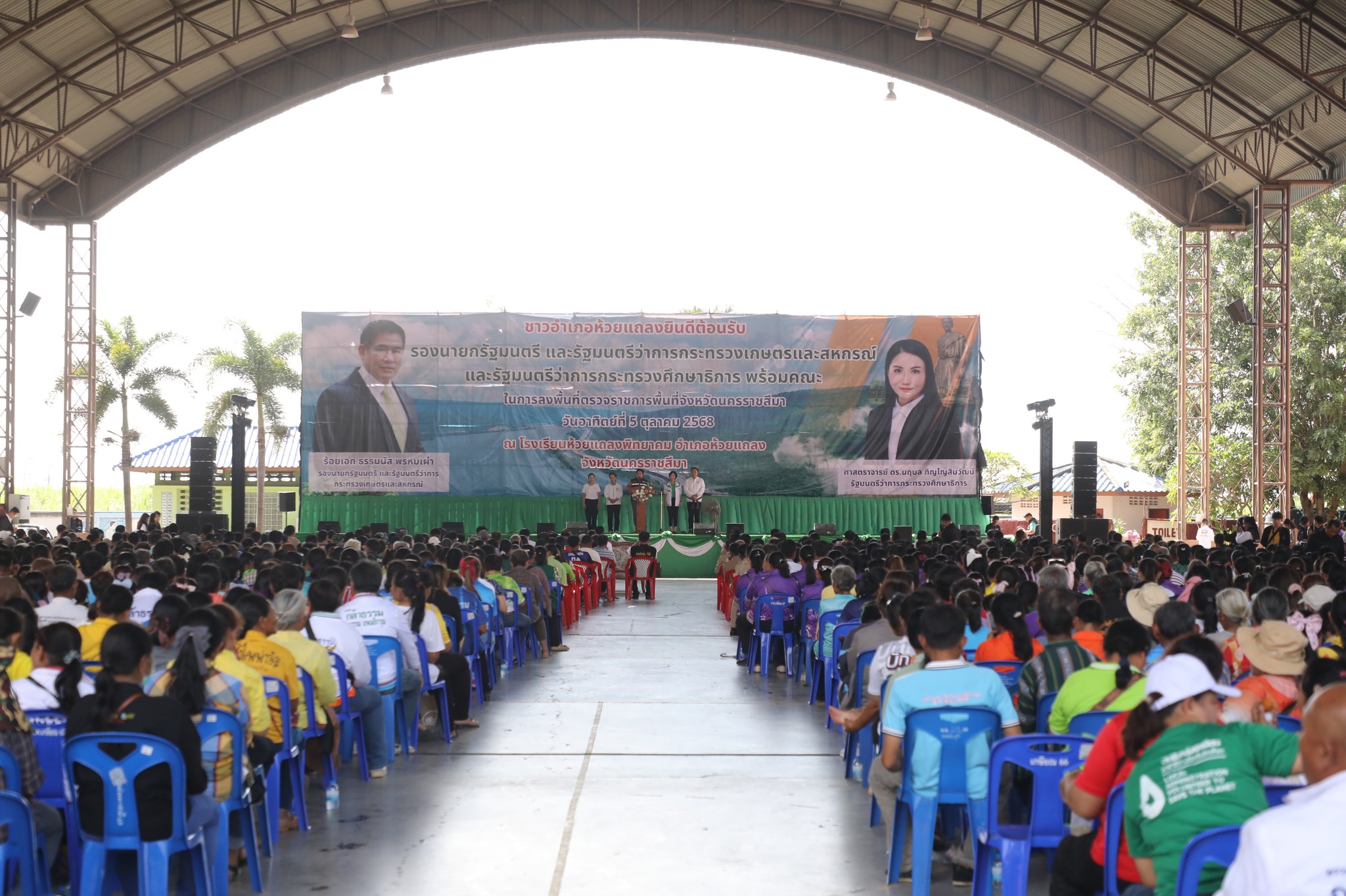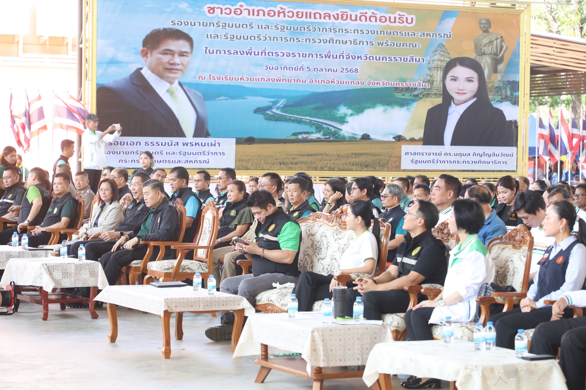 วันที่ 5 ตุลาคม 2568 นางสาวกุหลาบ สุนนท์ ปฏิรูปที่ดินจังหวัดยโสธร พร้อมด้วย นางสาวปฏิมากรณ์ ฤษดี ผู้อำนวยการกลุ่มยุทธศาสตร์และการปฏิรูปที่ดิน นายเจริญ สังข์ทอง ผู้อำนวยการ กลุ่มงานช่างและแผนที่ ส.ป.ก.ยโสธร ร่วมมอบโฉนดเพื่อการเกษตร จำนวน 225 ราย 225 แปลง และร่วมต้อนรับรองนายกรัฐมนตรี และรัฐมนตรีว่าการกระทรวงเกษตรและสหกรณ์ (ร้อยเอก ธรรมนัส พรหมเผ่า) พร้อมด้วย รัฐมนตรีว่าการกระทรวงศึกษาธิการ (ศ.ดร.นฤมล ภิญโญสินวัฒน์) นายวิณะโรจน์ ทรัพย์ส่งสุข ปลัดกระทรวงเกษตรและสหกรณ์ และผู้บริหารกระทรวงเกษตรและสหกรณ์ ณ โรงเรียนห้วยแถลงพิทยาคม ตำบลห้วยแถลง อำเภอห้วยแถลง จังหวัดนครราชสีมา